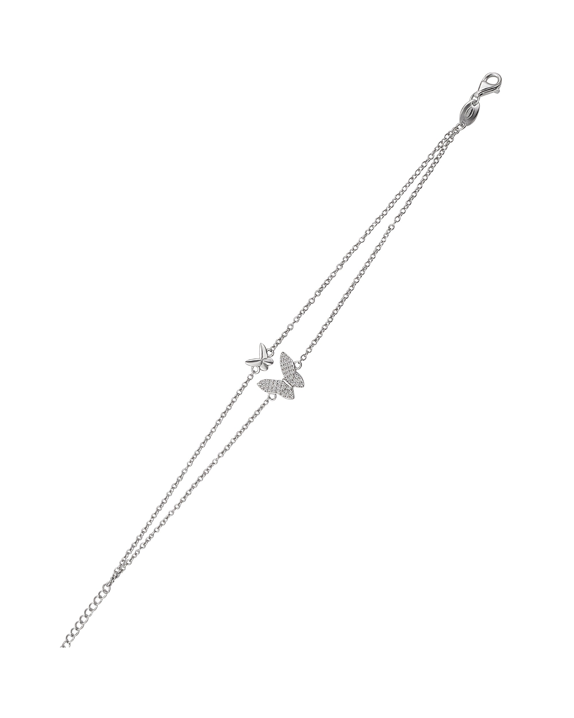 SILVER BRACELET WITH 2 BUTTERFLIES AND STONES