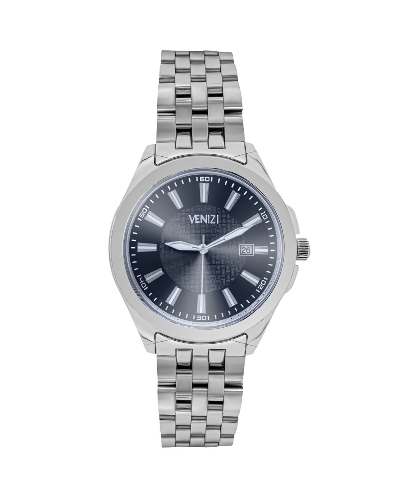 MONTRE VENIZI ARGENTÉ CADRAN BLEU NUIT AVEC BRACELET ACIER PIERRES AGATES BLEUES ET MOTIF INFINI