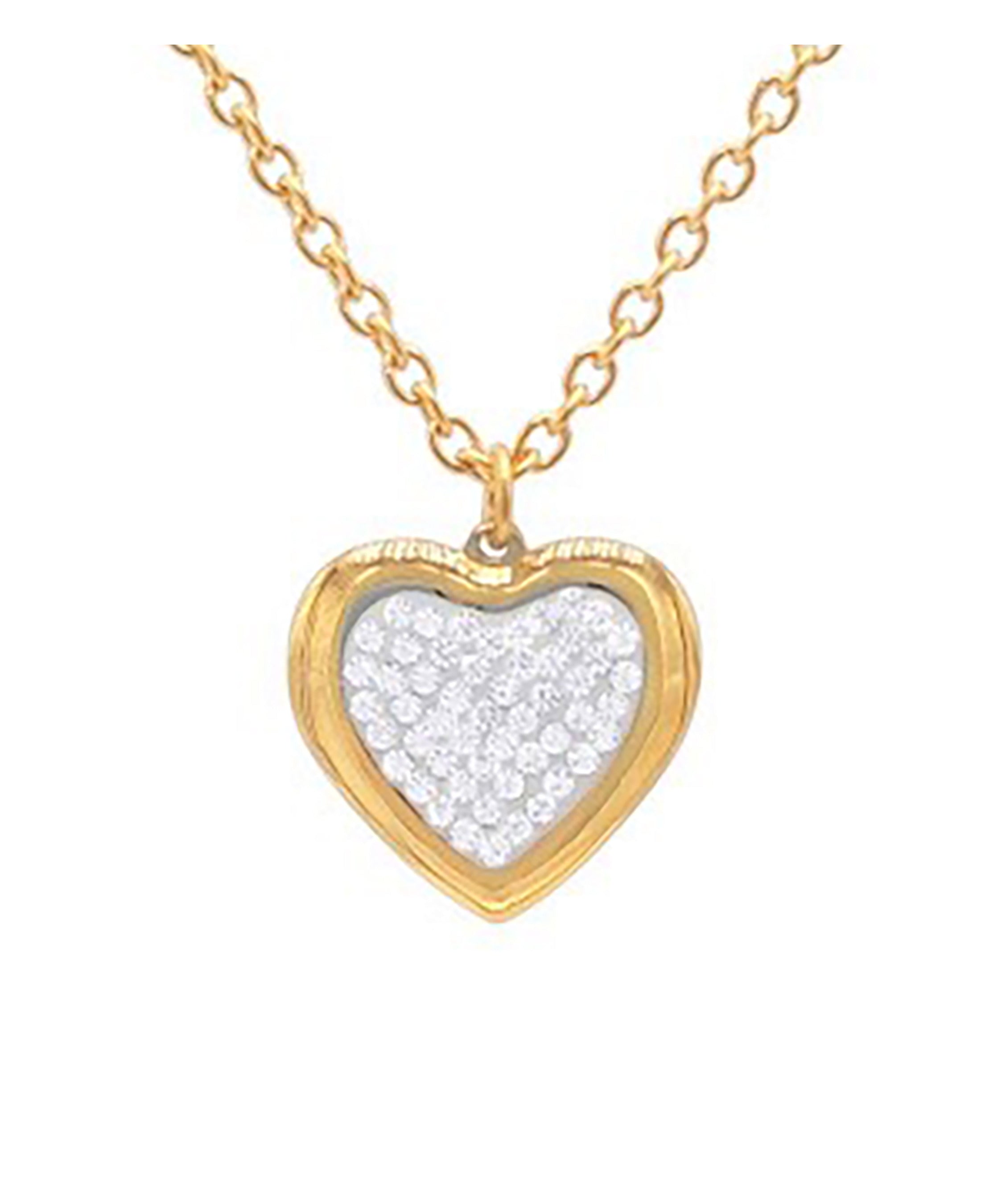 VERGULDE STALEN KETTING MET HART EN STRASSEN HANGER