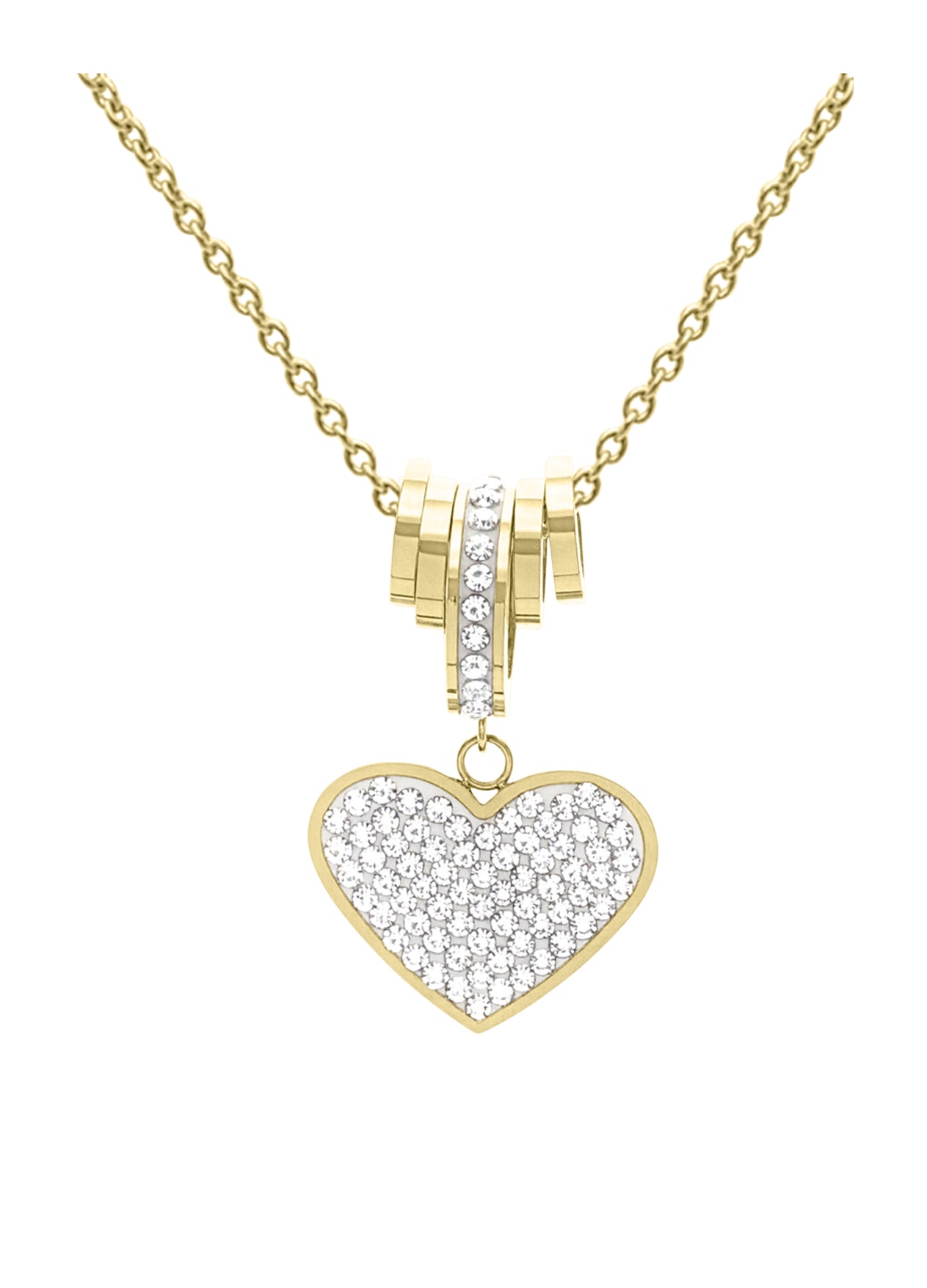 VERGULDE STALEN KETTING MET CIRKEL EN HART EN STRASS