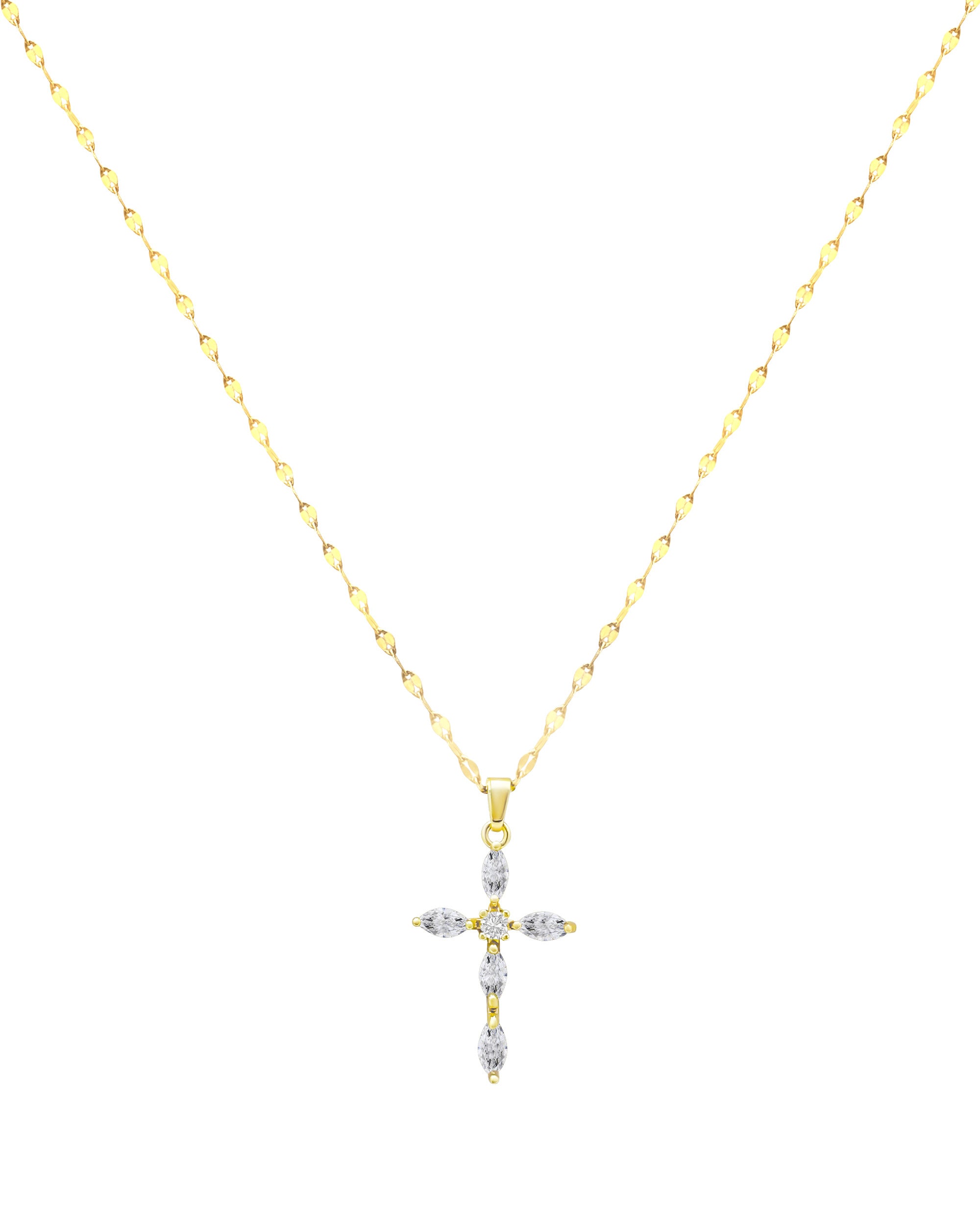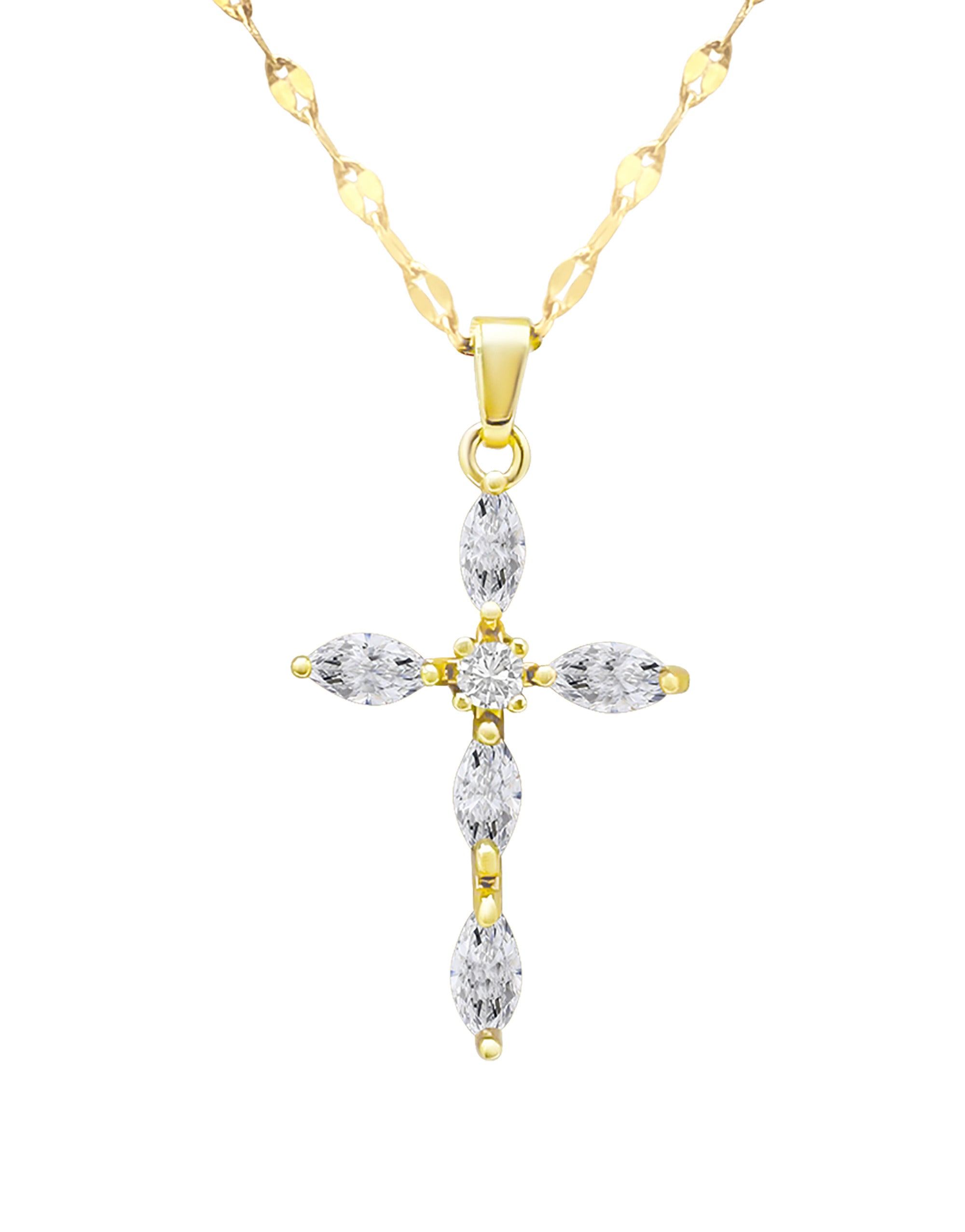 VERGULDE STALEN KETTING MET KRUIS HANGER EN ZIRKONIUM