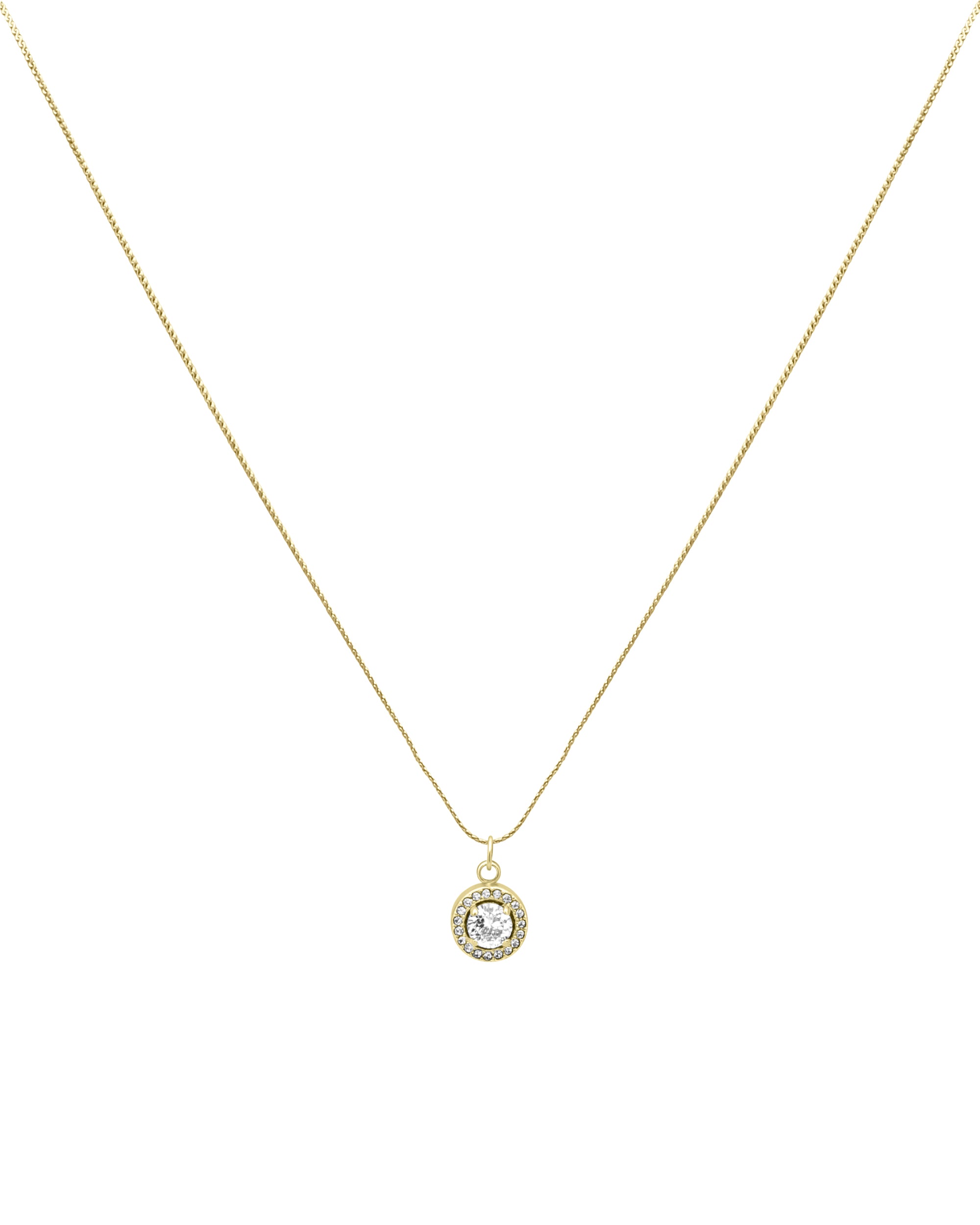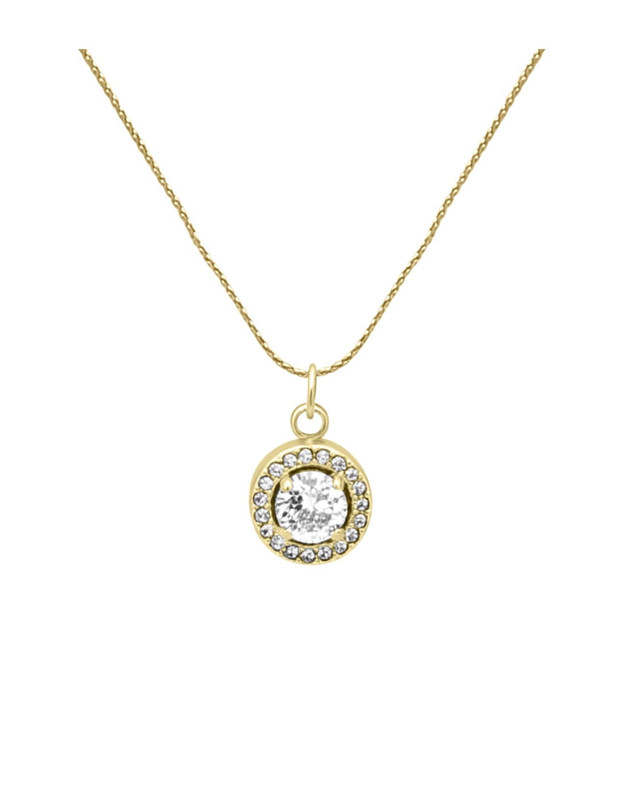 VERGULDE STALEN KETTING MET RONDE HANGER, STRASS EN SOLITAIRE STER