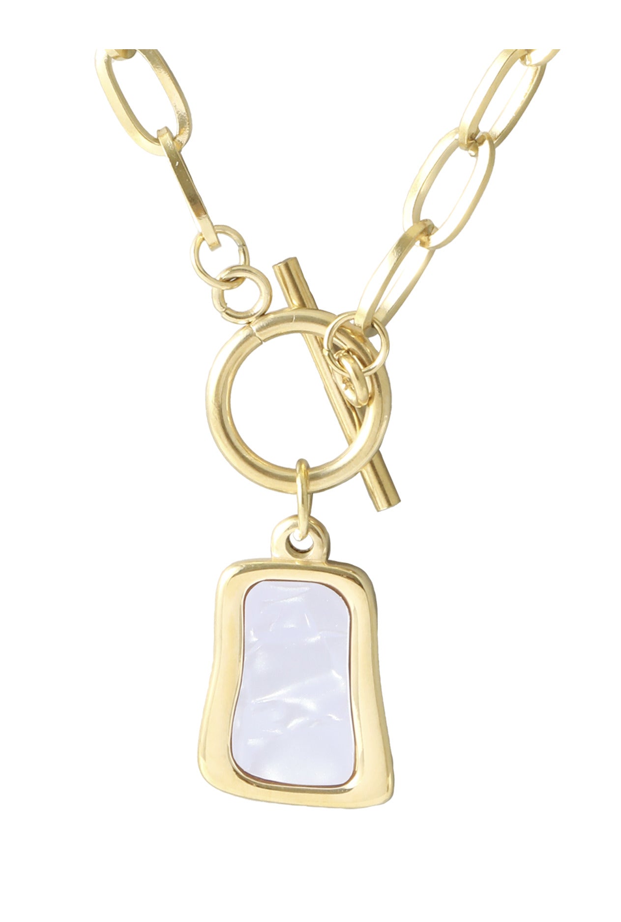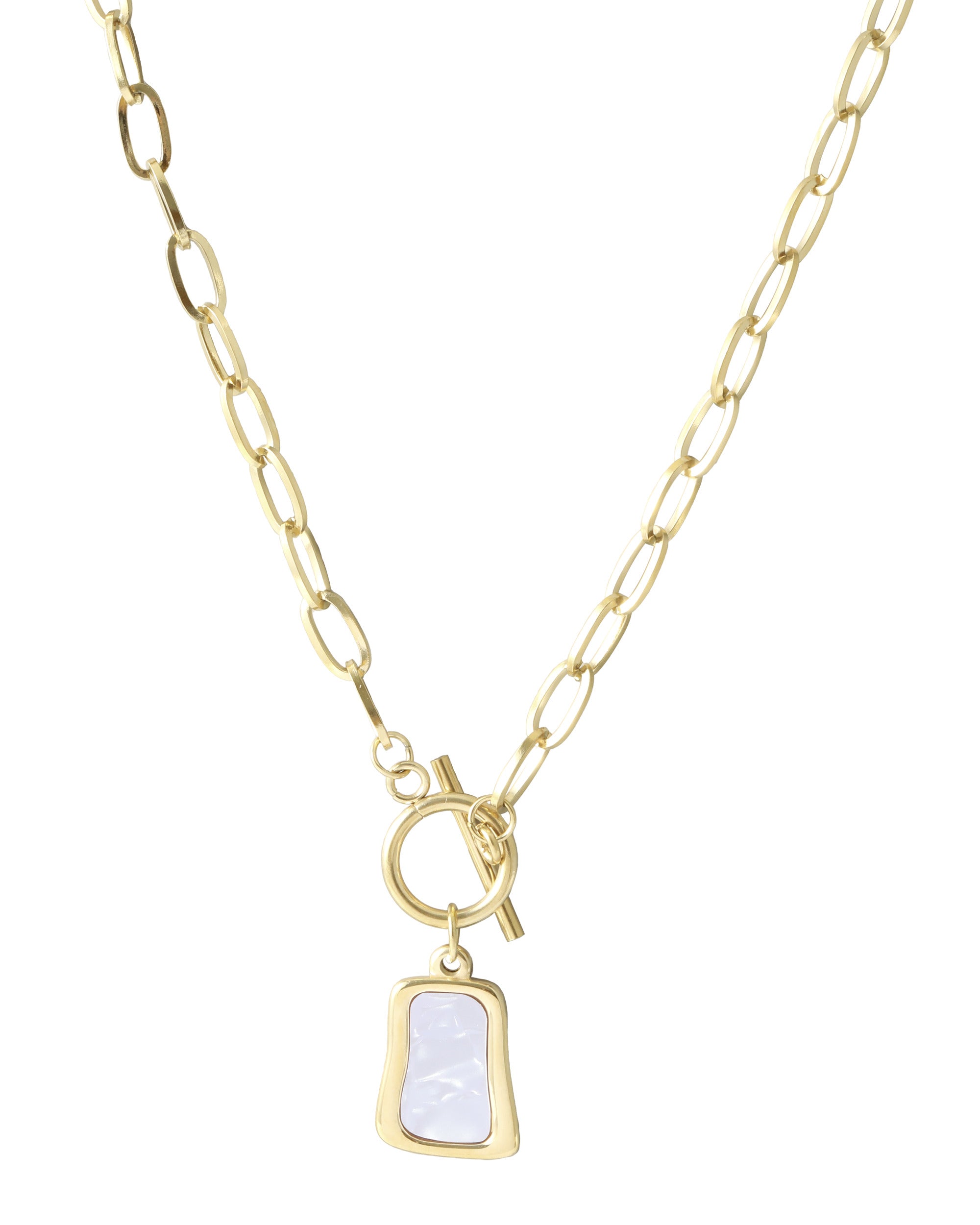VERGULDE STALEN KETTING MET PARELMOER TRAPEZE HANGER
