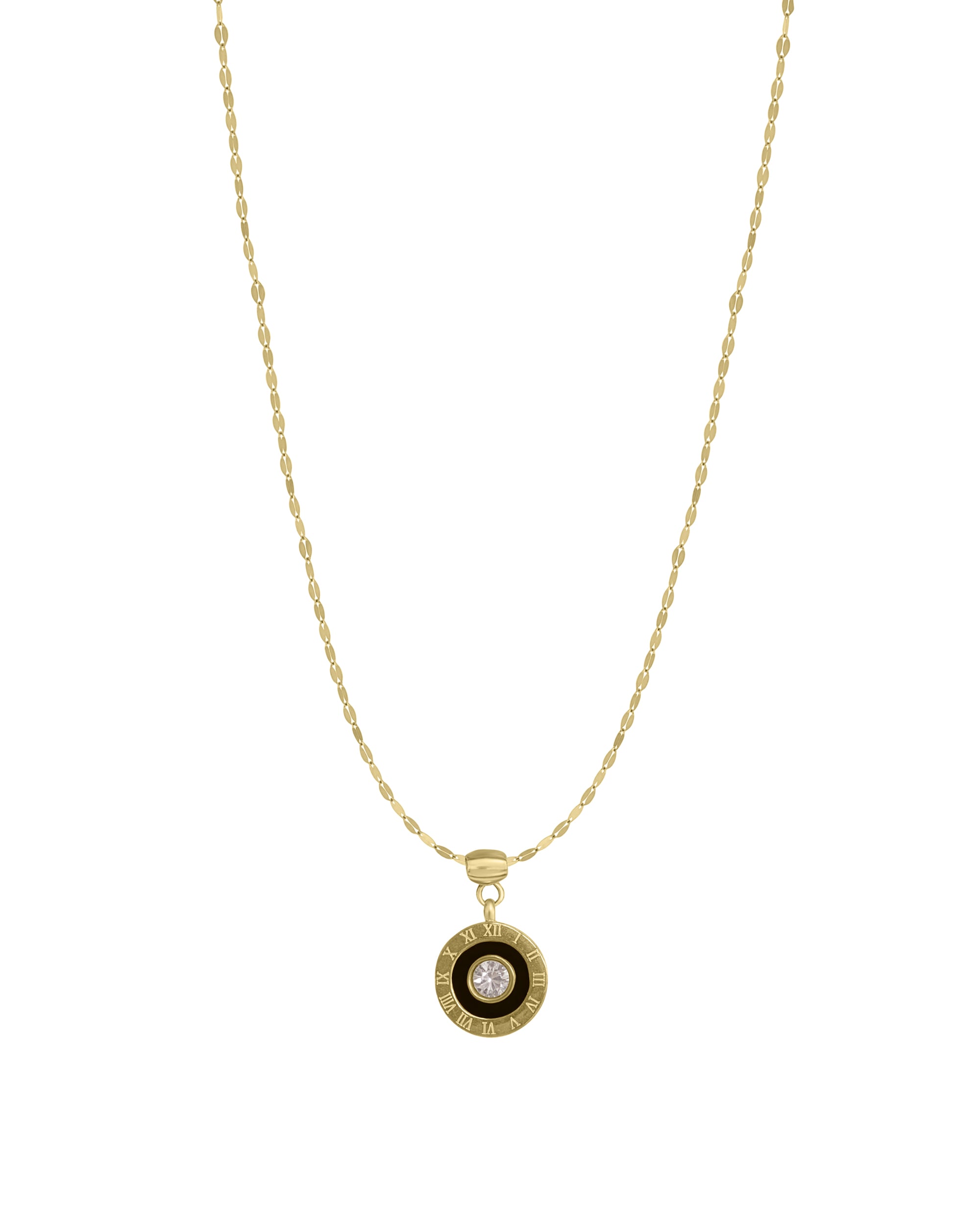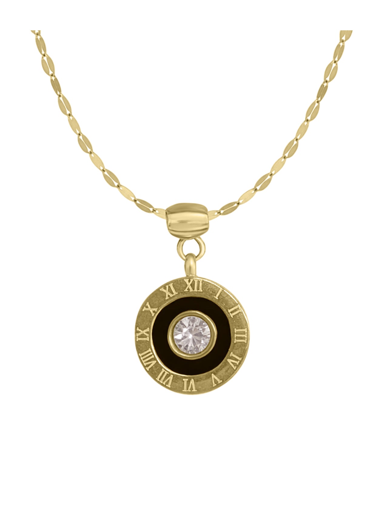 RONDE VERGULDE STALEN KETTING MET ZWARTE EMAILLE, STRASS EN ROMEINSE CIJFERS