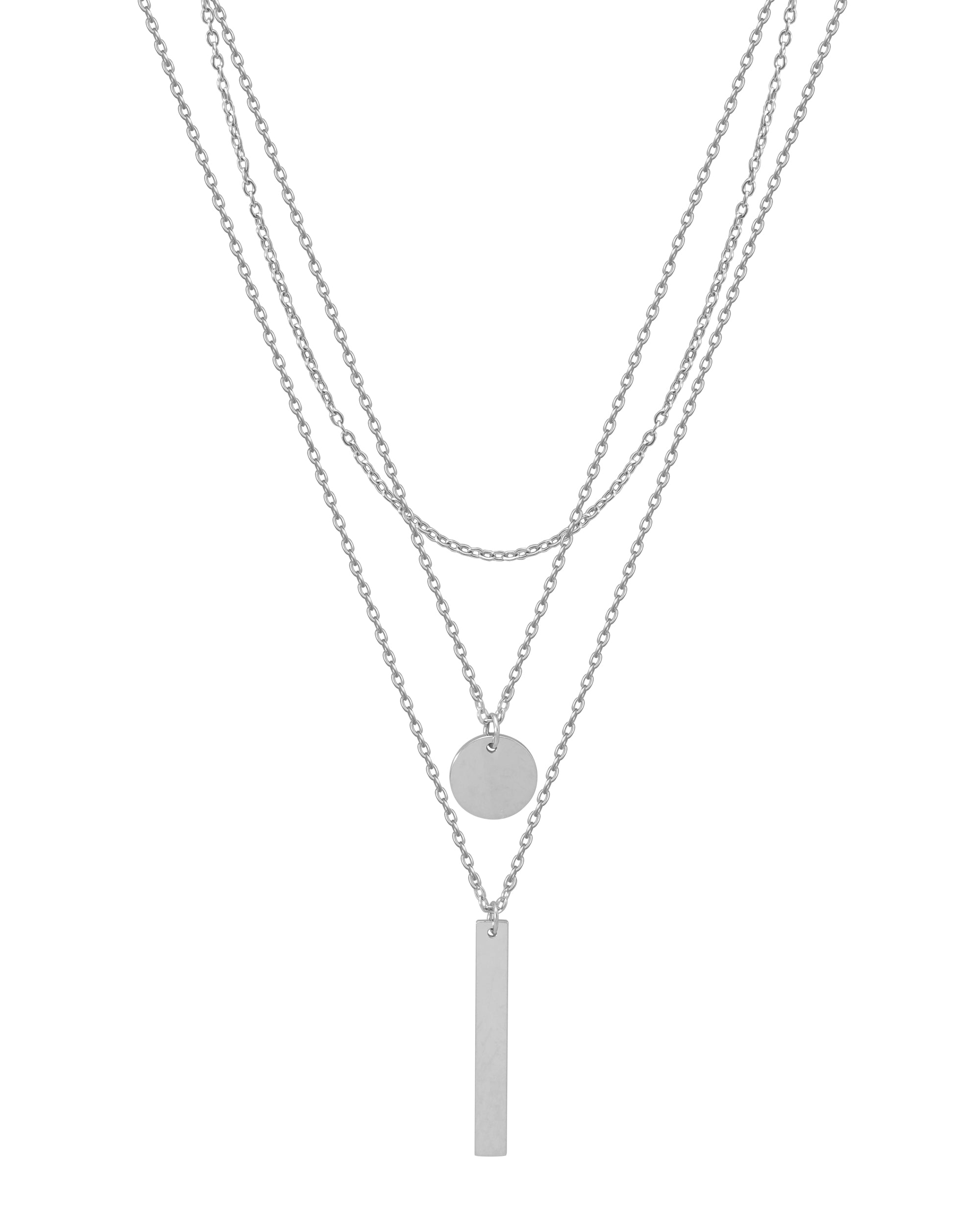DRIEVOUDIGE STALEN SCHAKELKETTING MET BALLON EN RECHTHOEKIGE HANGER