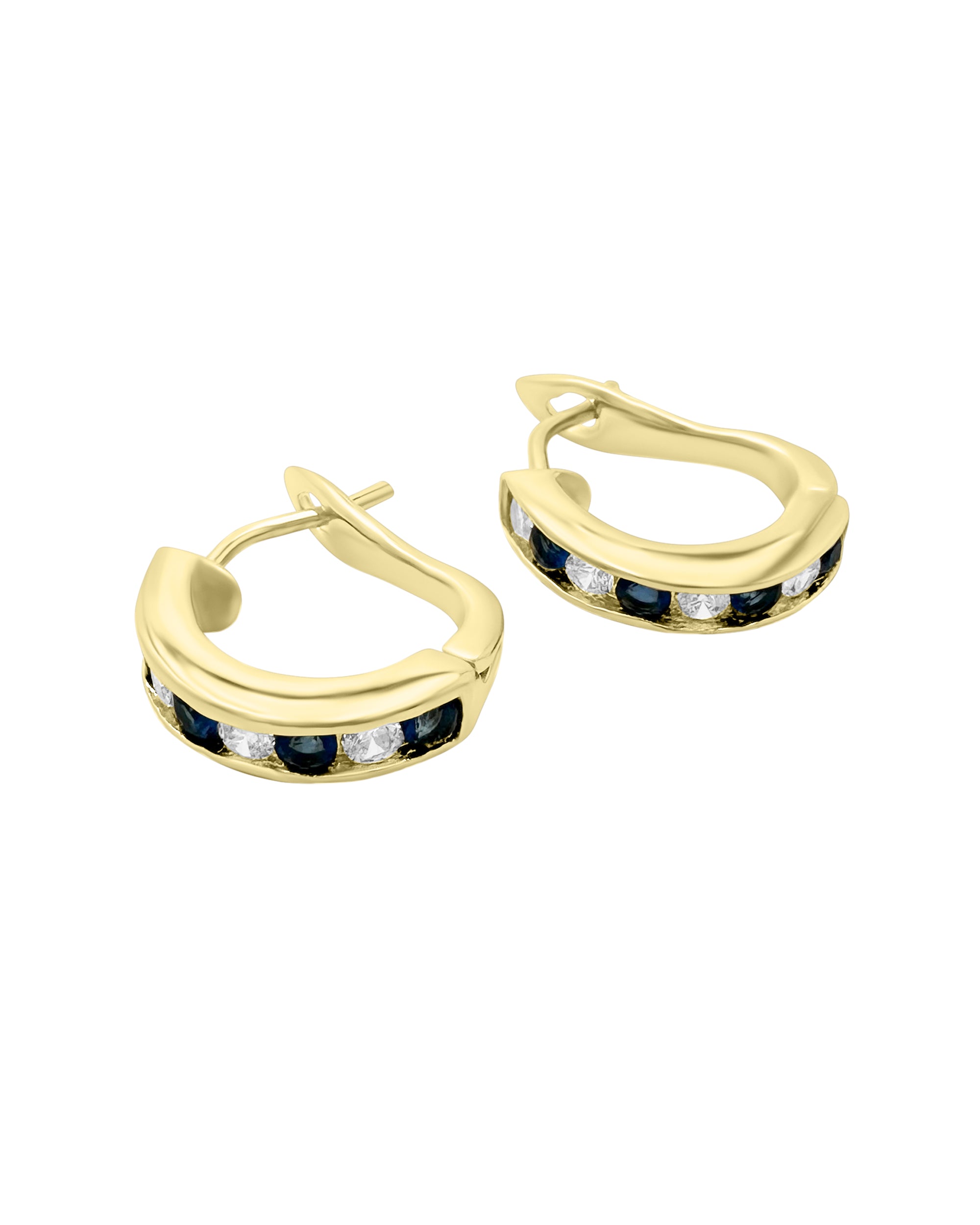 VERGULDE CREOOLS MET WIT ZIRKONIUM EN SAFFIER