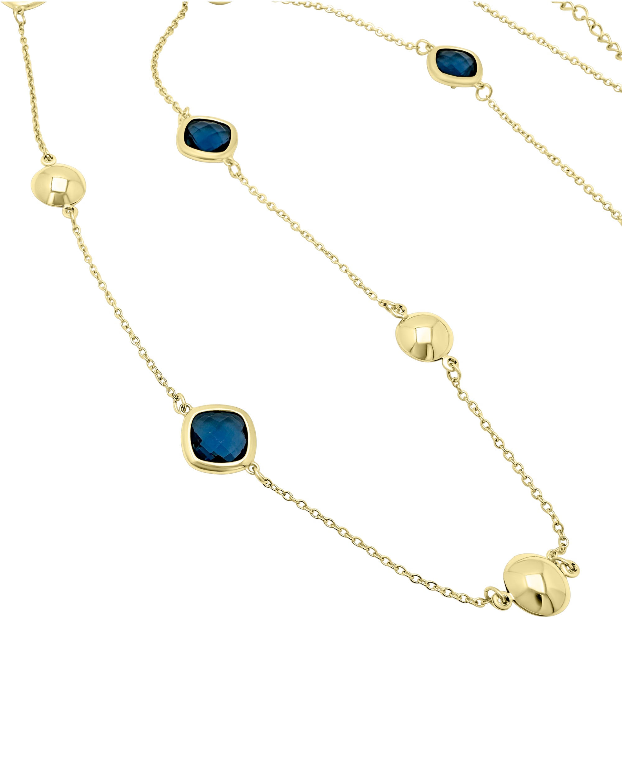 VERGULDE STALEN KETTING MET FACETGESLEPEN SAFFIERSTENEN
