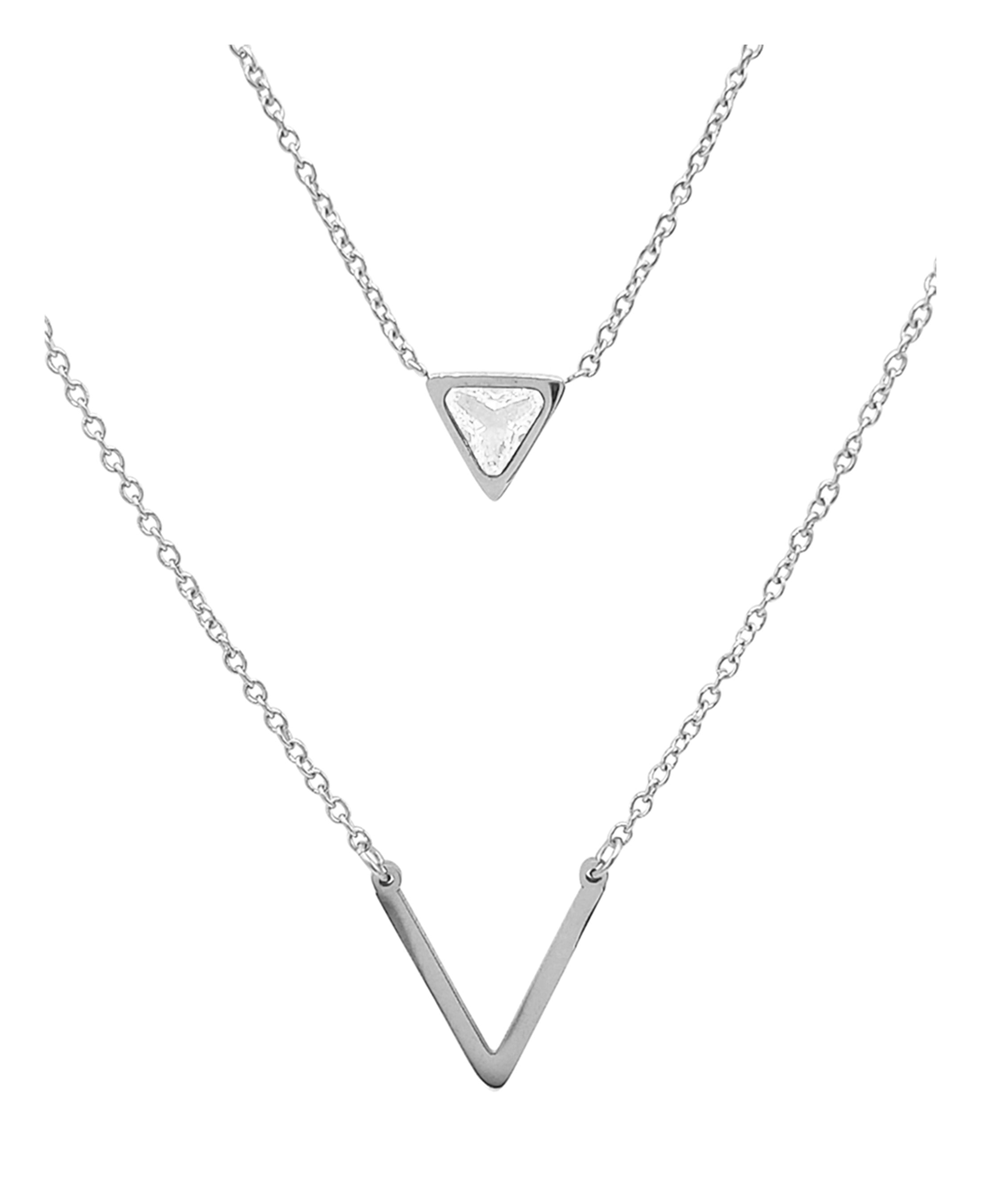 COLLIER EN ACIER 2 MAILLES AVEC PIERRE TRIANGULAIRE ET V