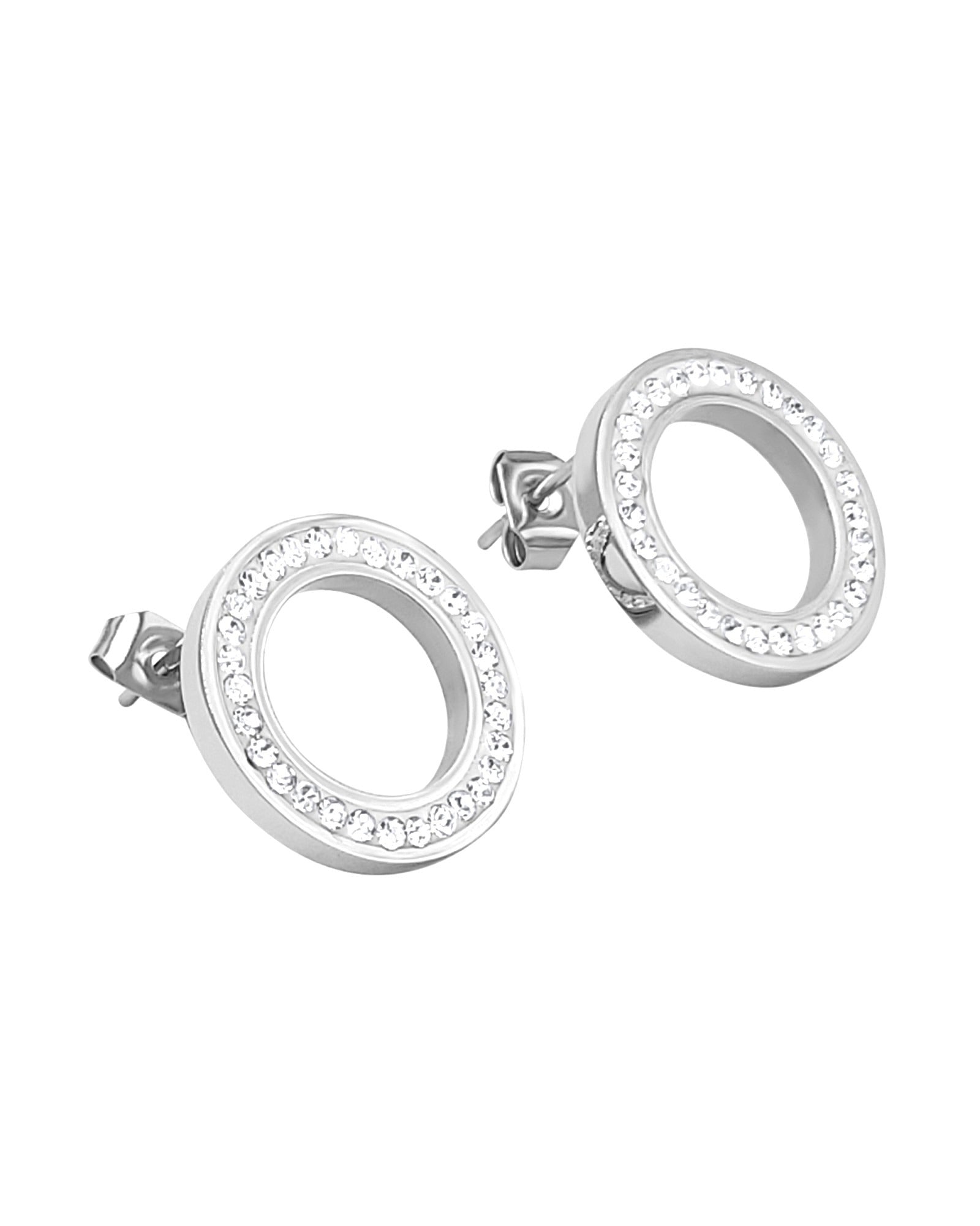 BOUCLES D'OREILLES EN ACIER CERCLE STRASS