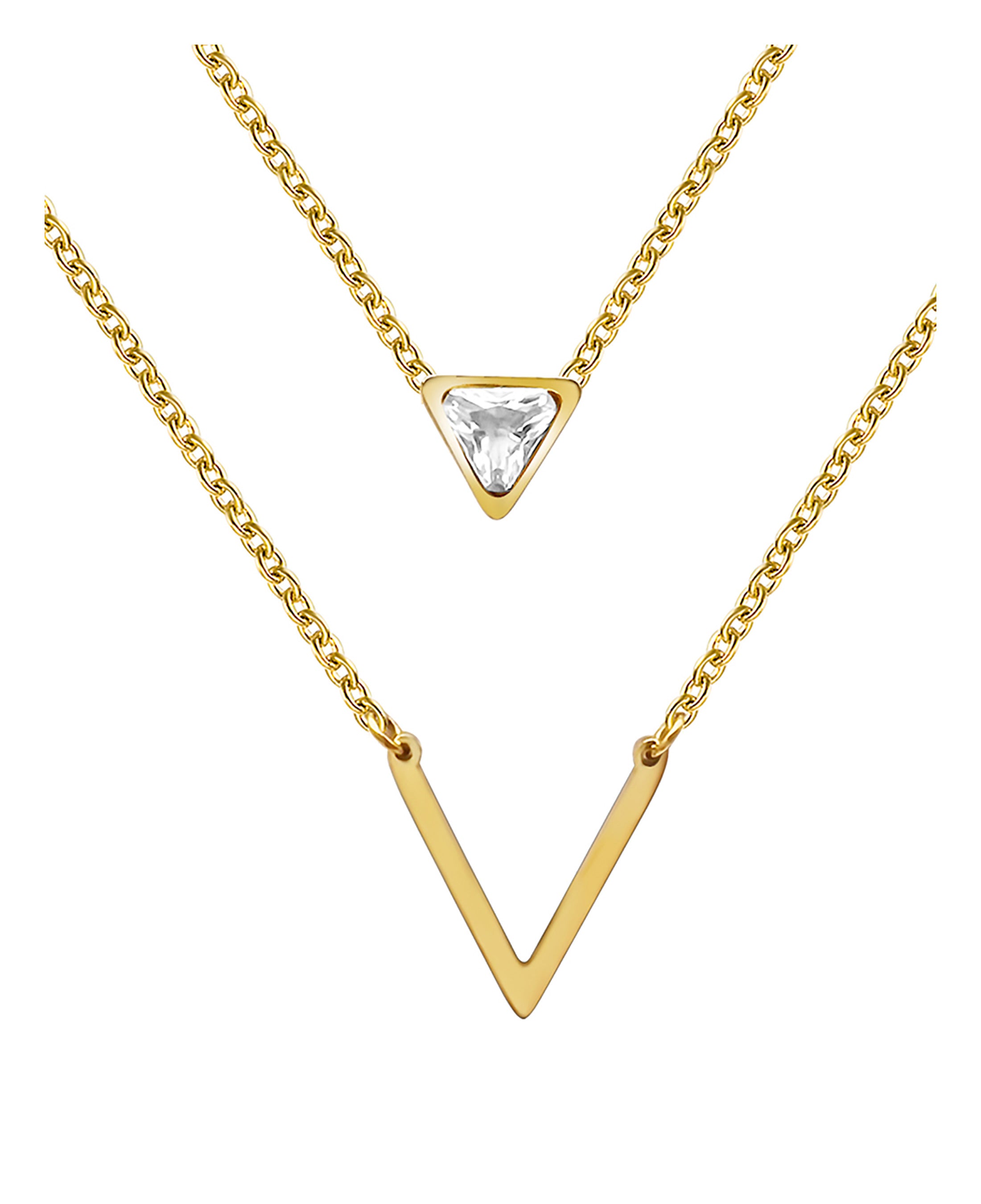 COLLIER EN ACIER DORE 2 MAILLES AVEC PIERRE TRIANGULAIRE ET V