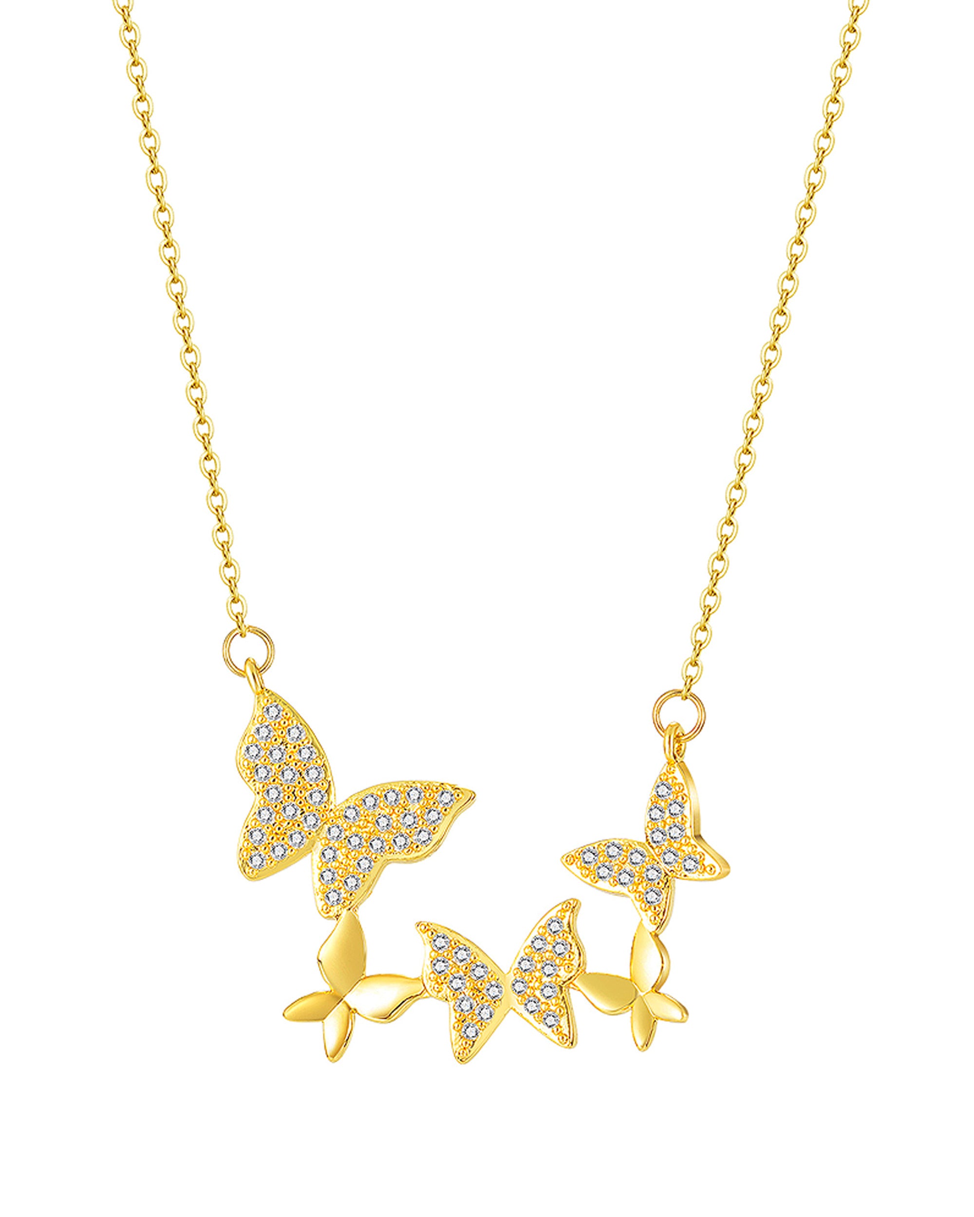 COLLIER EN ACIER DORE PAPILLONS AVEC STRASS