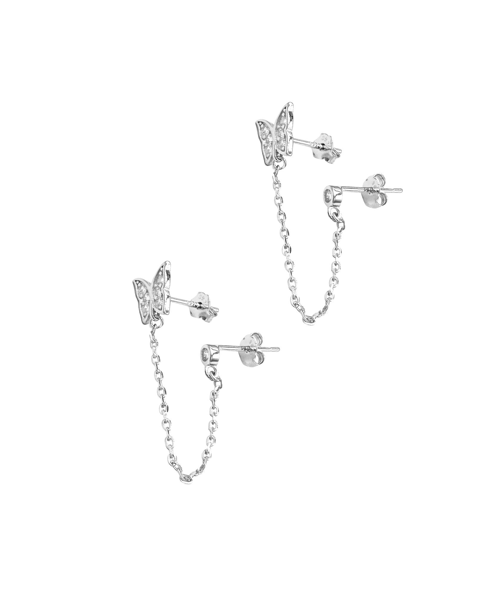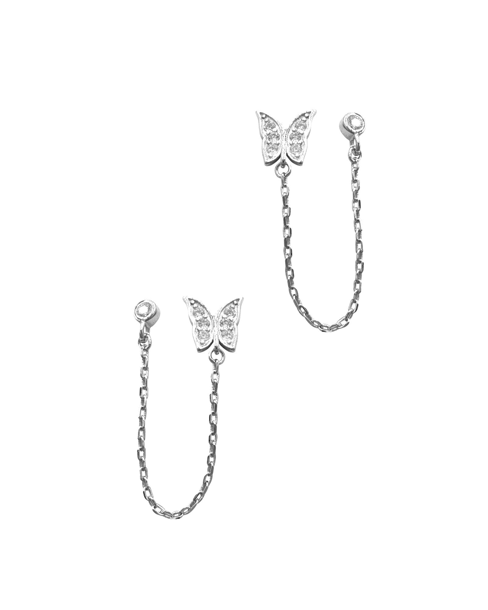 BOUCLES D'OREILLES DOUBLE EN ARGENT PAPILLON ET CHAINE