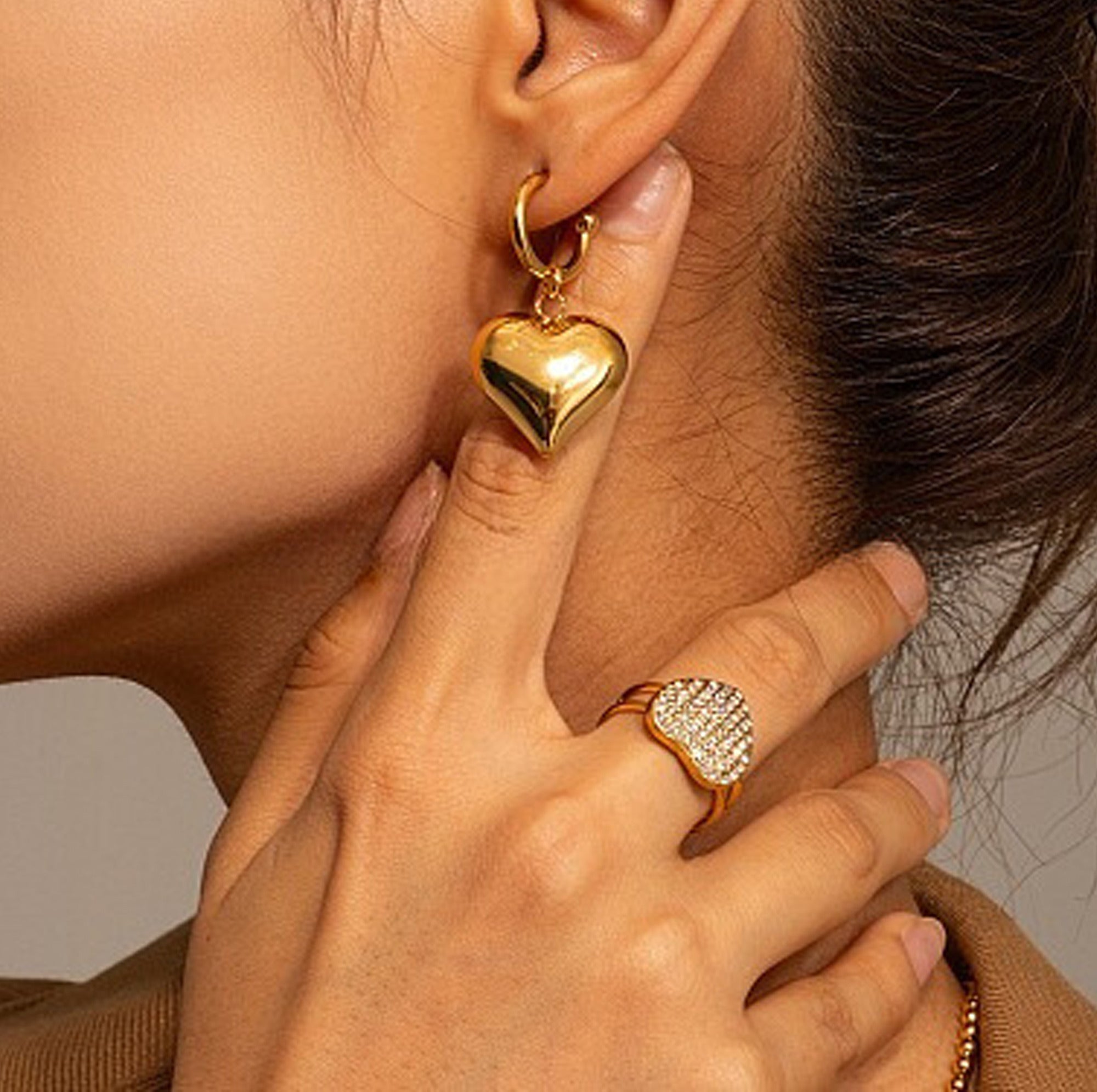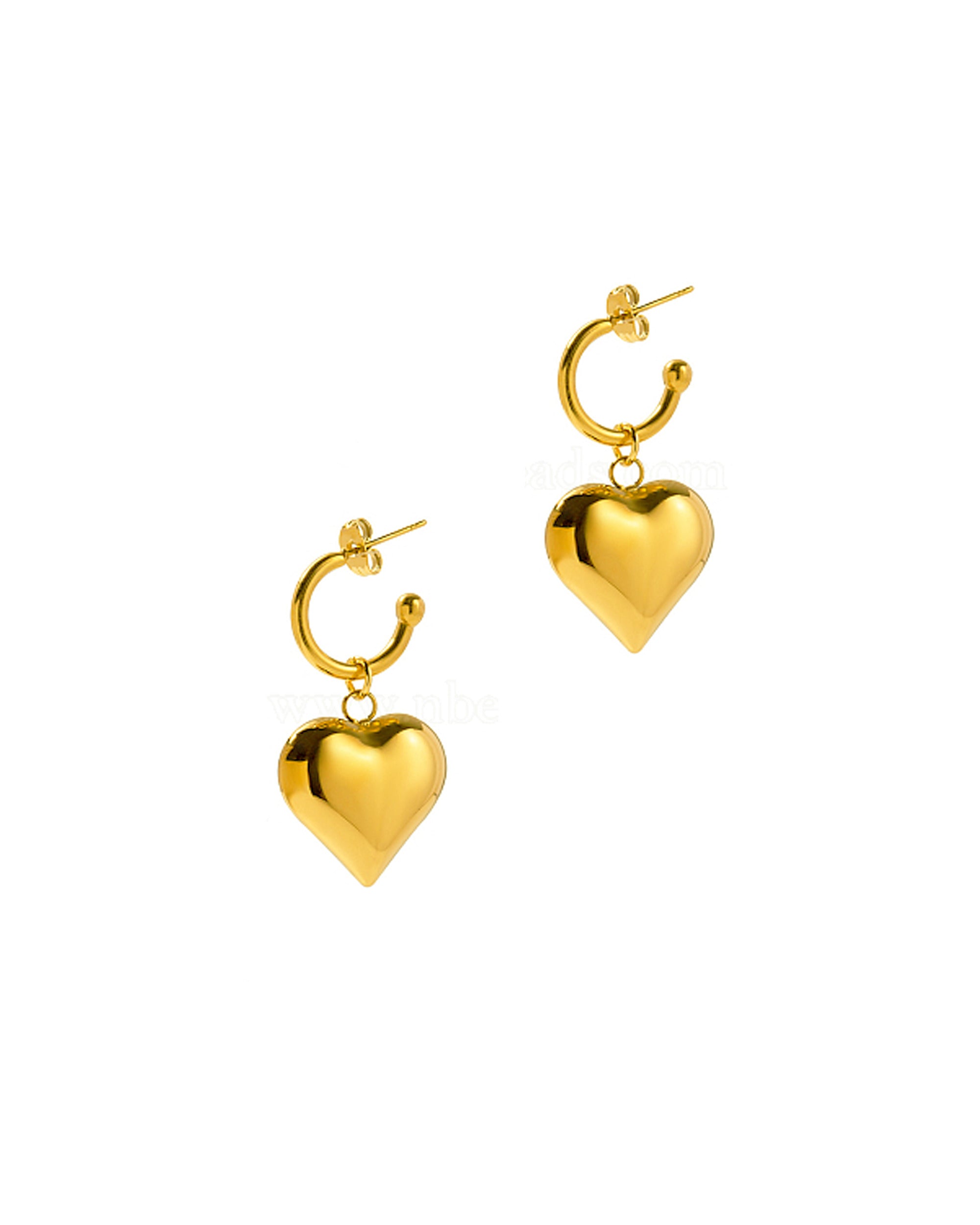 DEMI CREOLES EN ACIER DORE 1,6 CM COEUR PENDANT