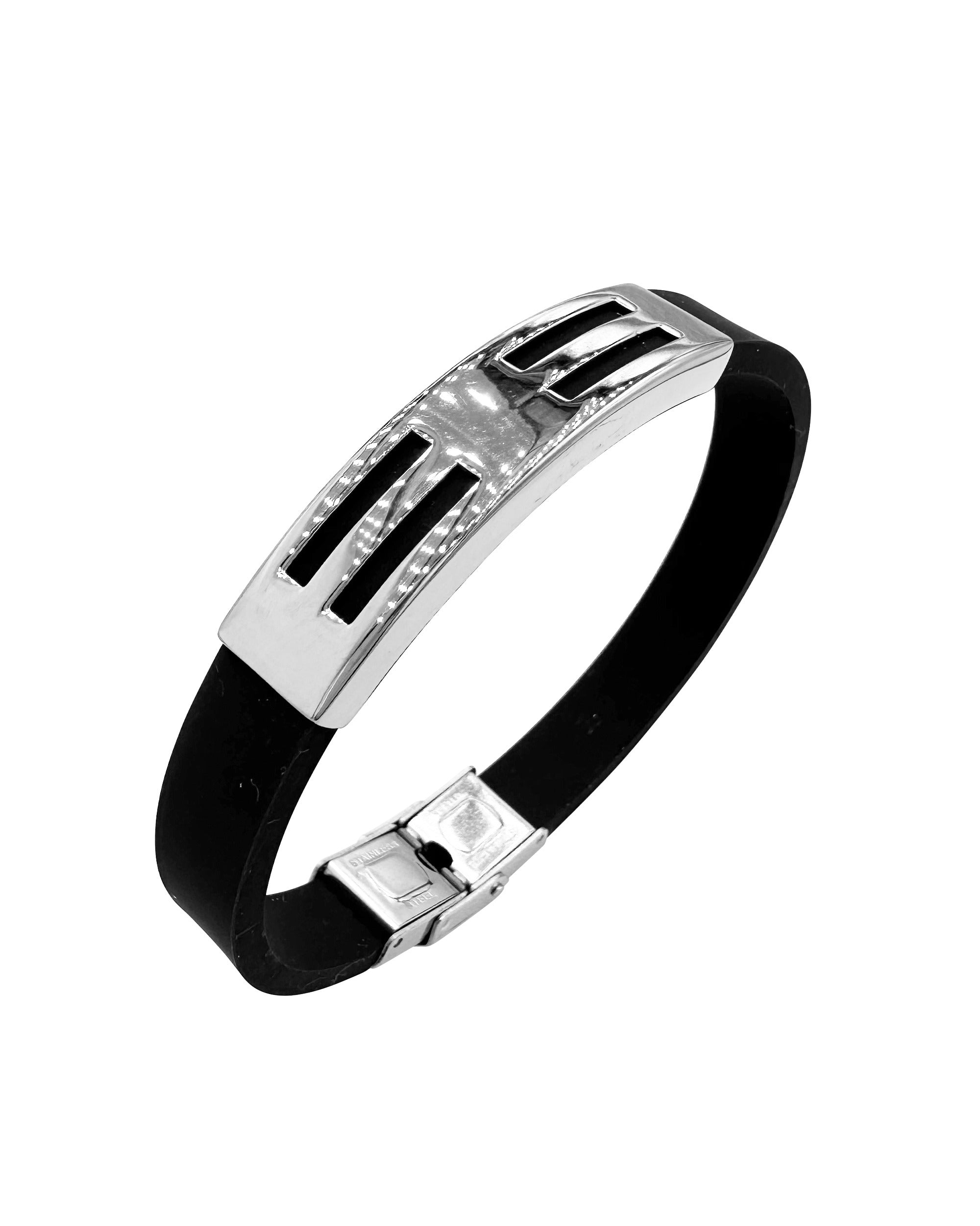 BRACELET EN CAOUTCHOUC ET ACIER PLAQUETTE AJOUREE