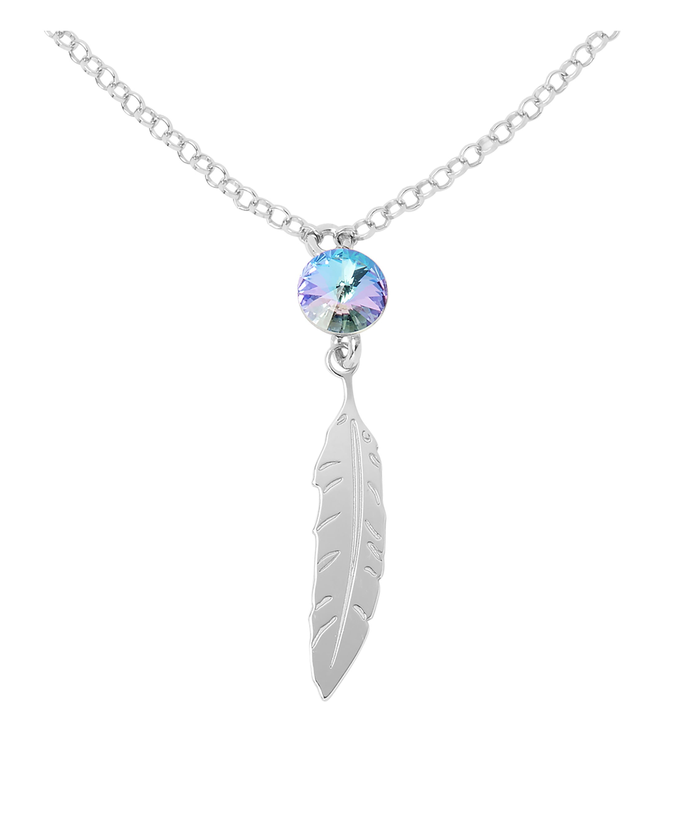 COLLIER EN ARGENT PENDENTIF PLUME ET CRISTAL SWAROVSKI