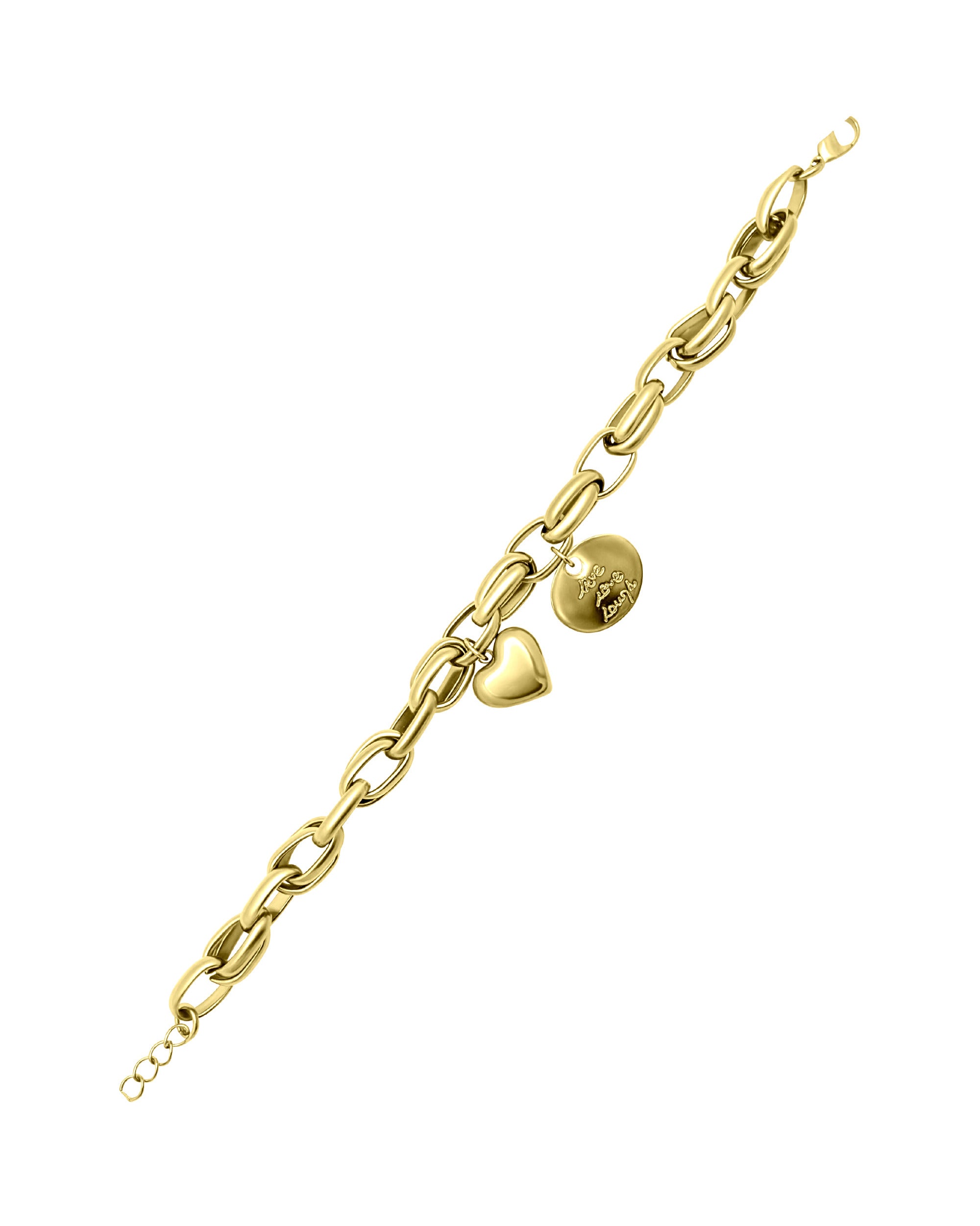 BRACELET ACIER DORE AVEC COEUR ET PASTILLE PENDANTS