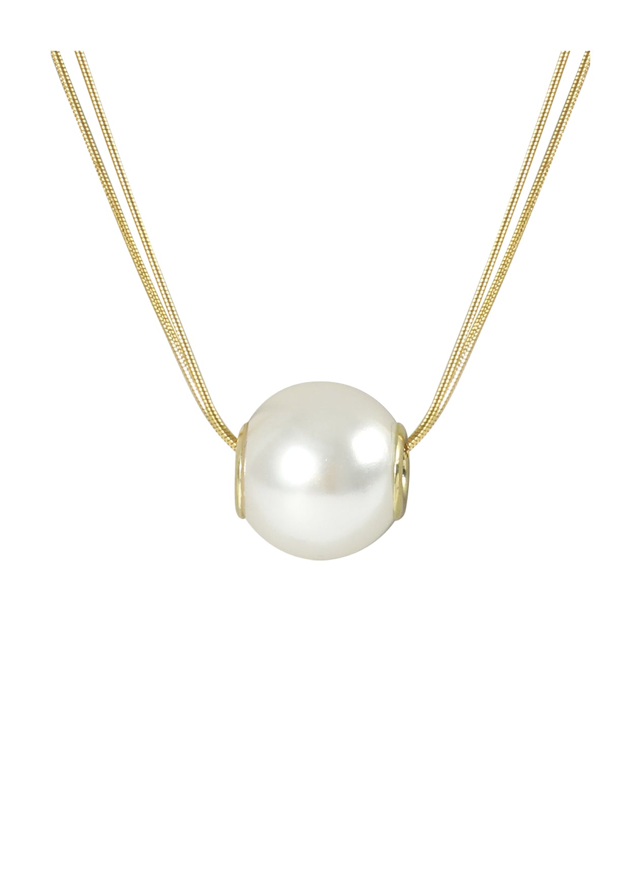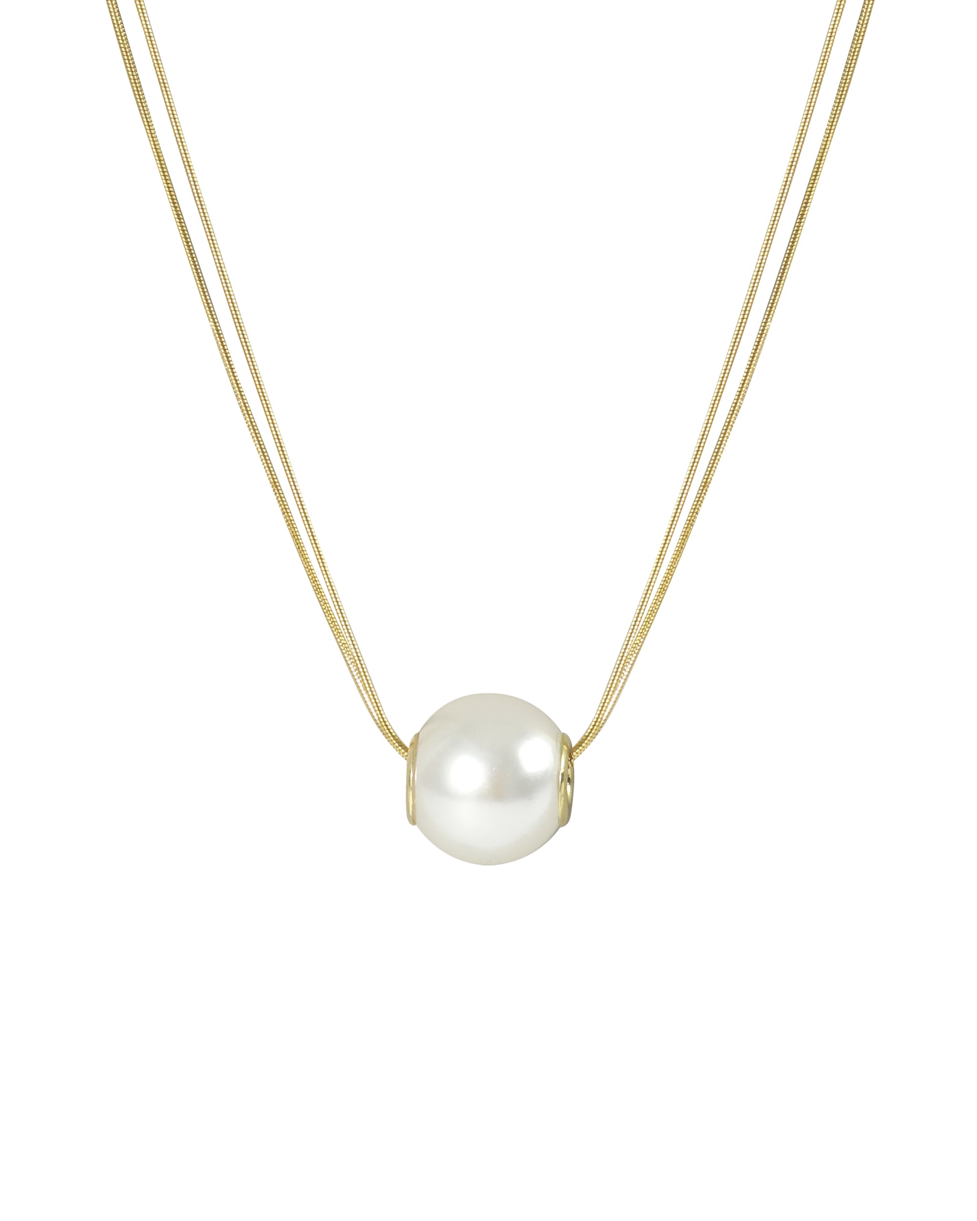 COLLIER EN ACIER DORE A DOUBLE MAILLE ORNE D'UNE PERLE CENTRALE