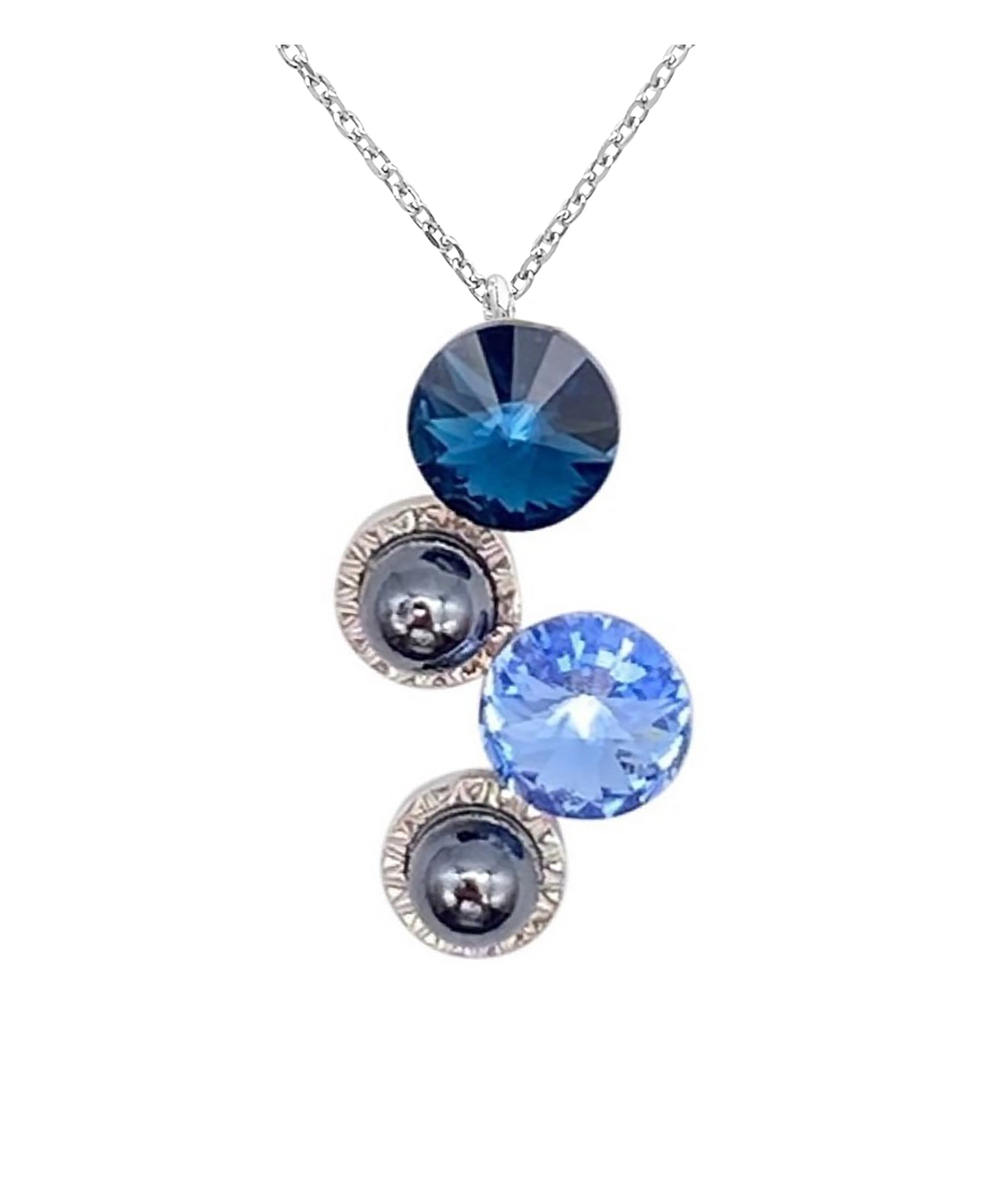 COLLIER EN ARGENT AVEC PENDENTIF CRISTAUX SWAROVSKI BLEU ET HEMATITE