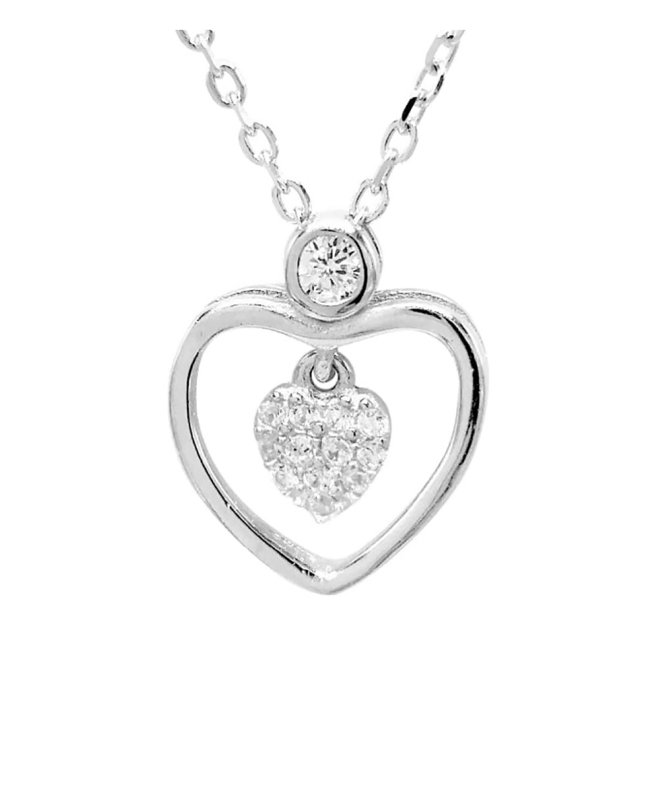 COLLIER EN ARGENT AVEC PENDENTIF COEUR ET PIERRES