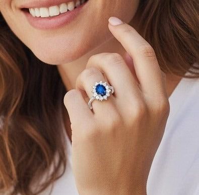 BAGUE EN ARGENT FLEUR BLEUE ET PIERRES