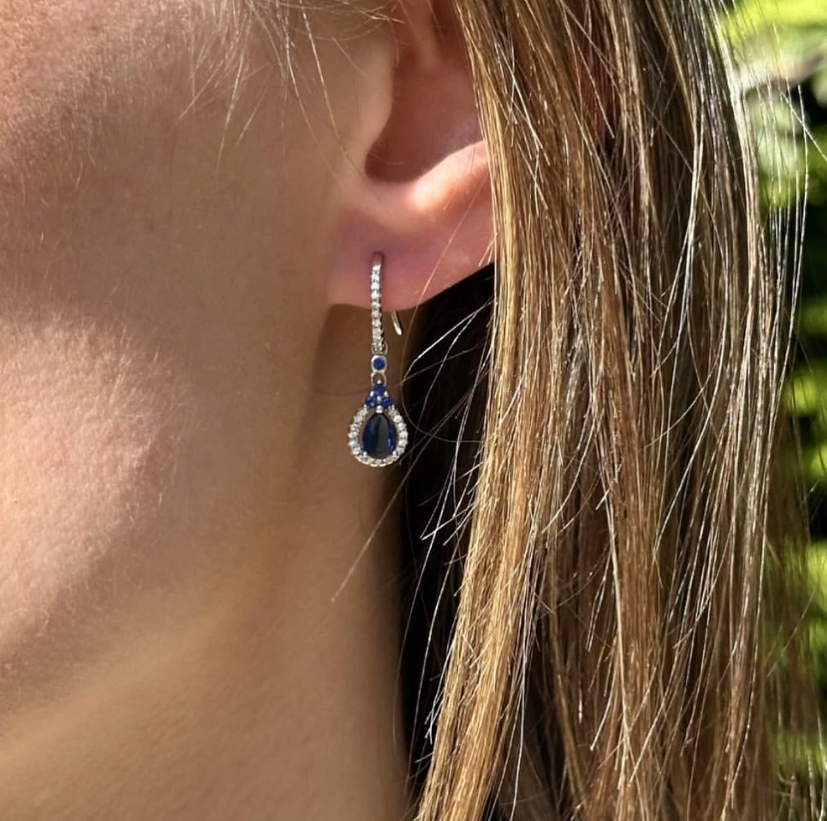 BOUCLES D'OREILLES EN ARGENT MOTIF GOUTTE AVEC SAPHIR ET ZIRCONIUM
