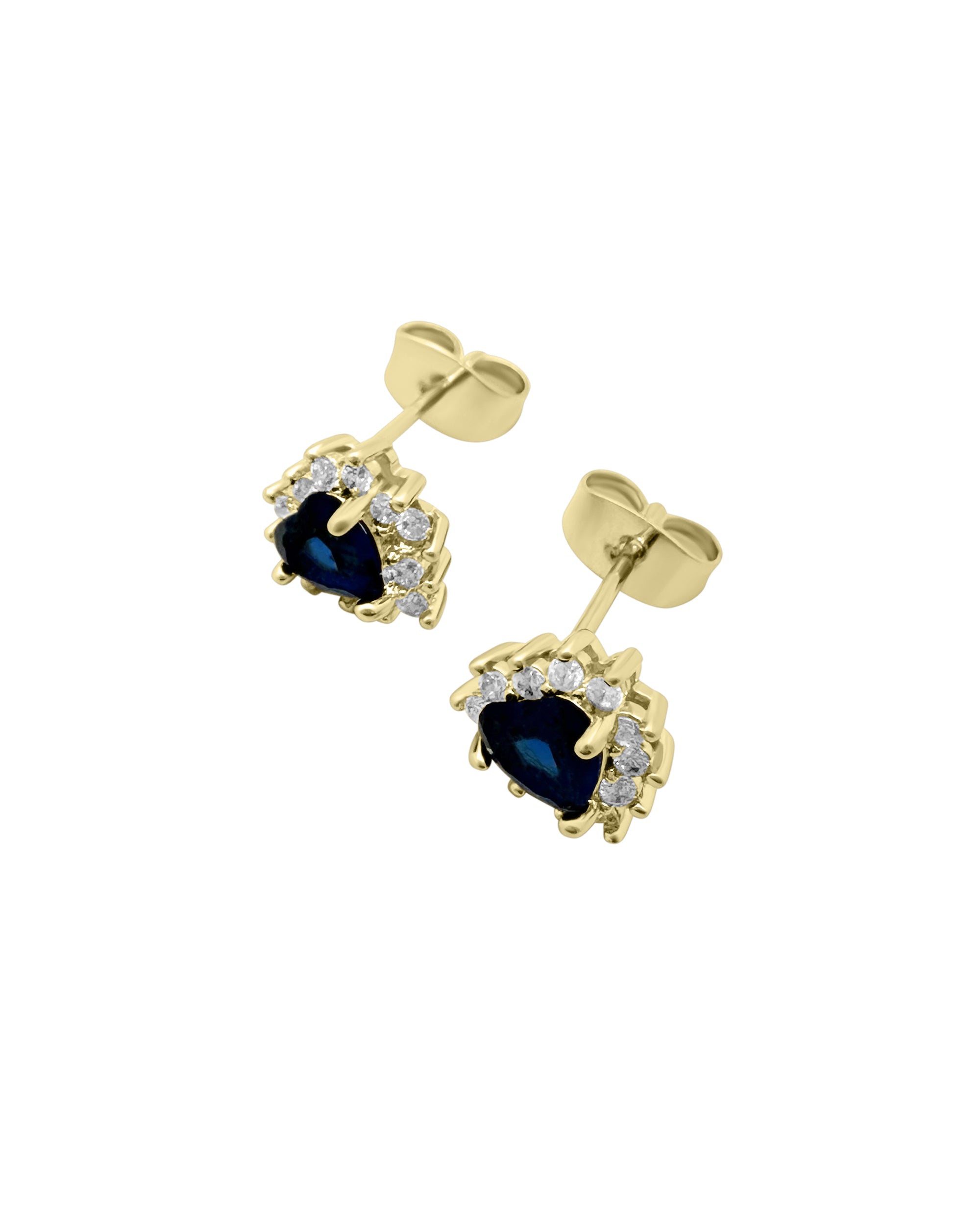 BOUCLES D'OREILLES EN PLAQUE OR AVEC ZIRCONIUM ET COEUR SAPHIR