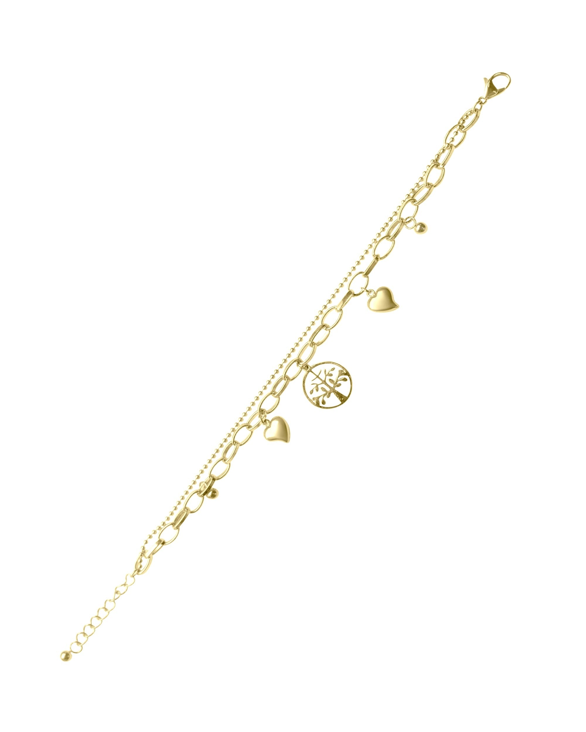 BRACELET EN ACIER COEURS ET ARBRE DE VIE PENDANTS