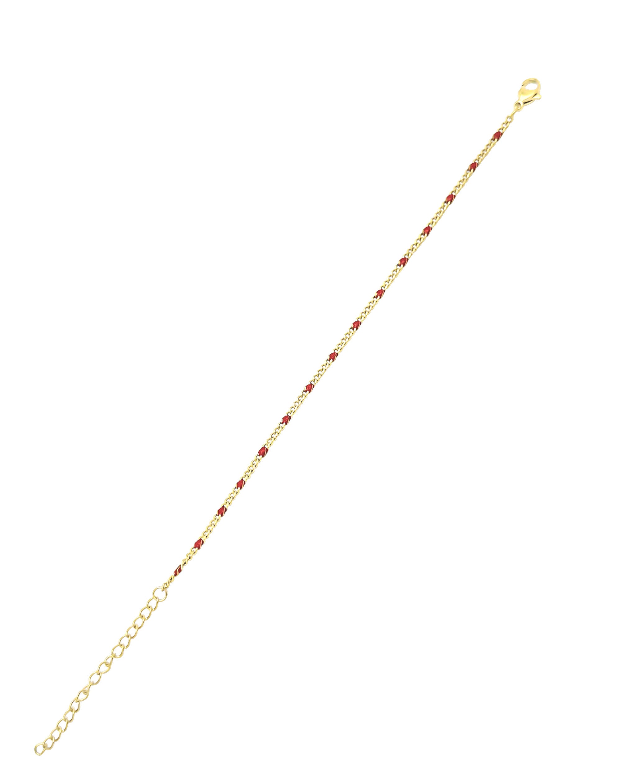 BRACELET EN ACIER DORE AVEC BILLES ROUGES