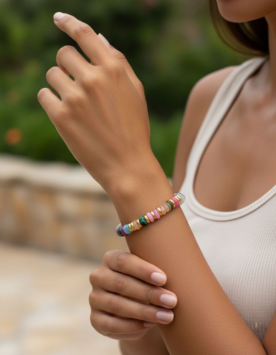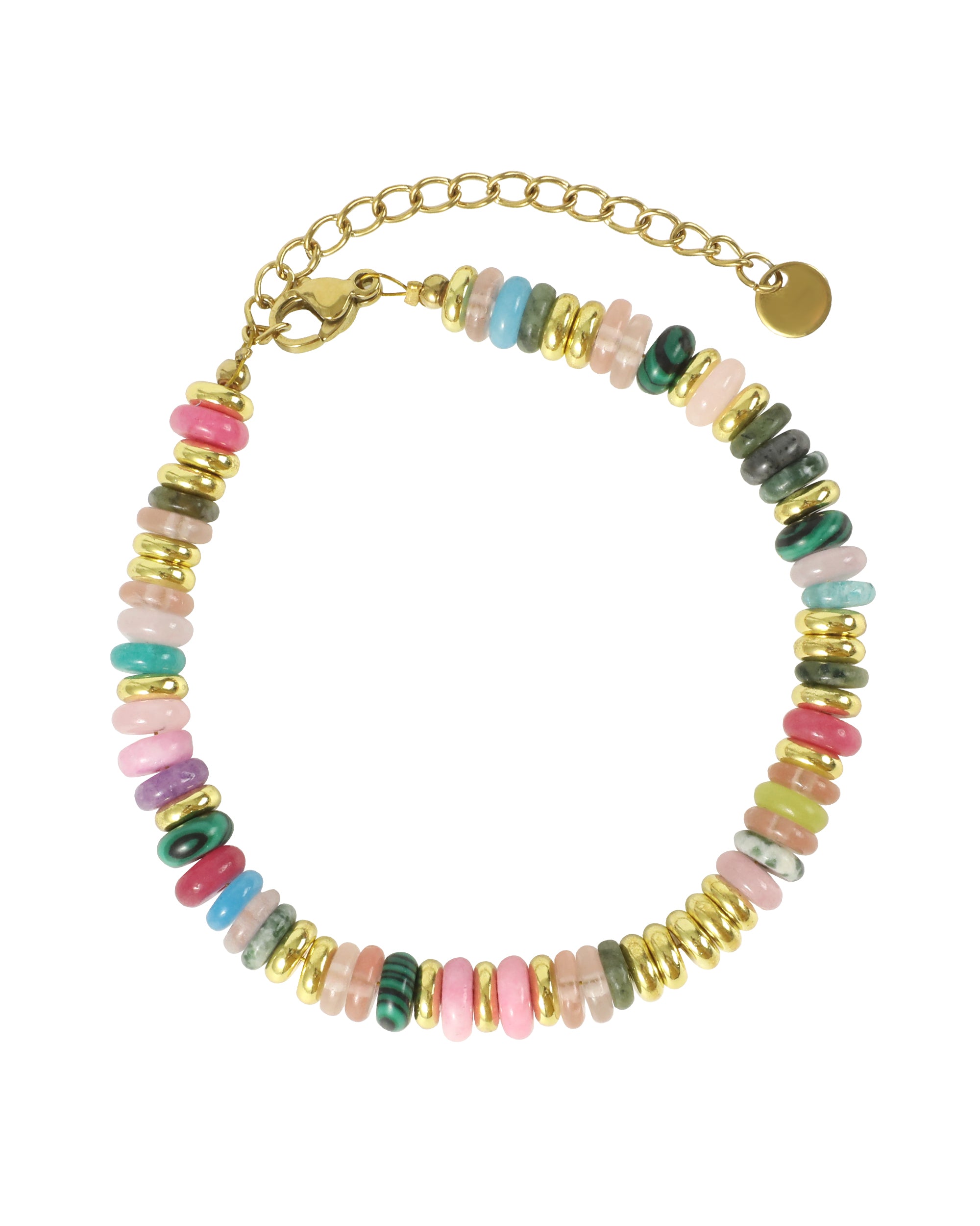 BRACELET EN ACIER DORE AVEC CERCLES MULTICOLOR