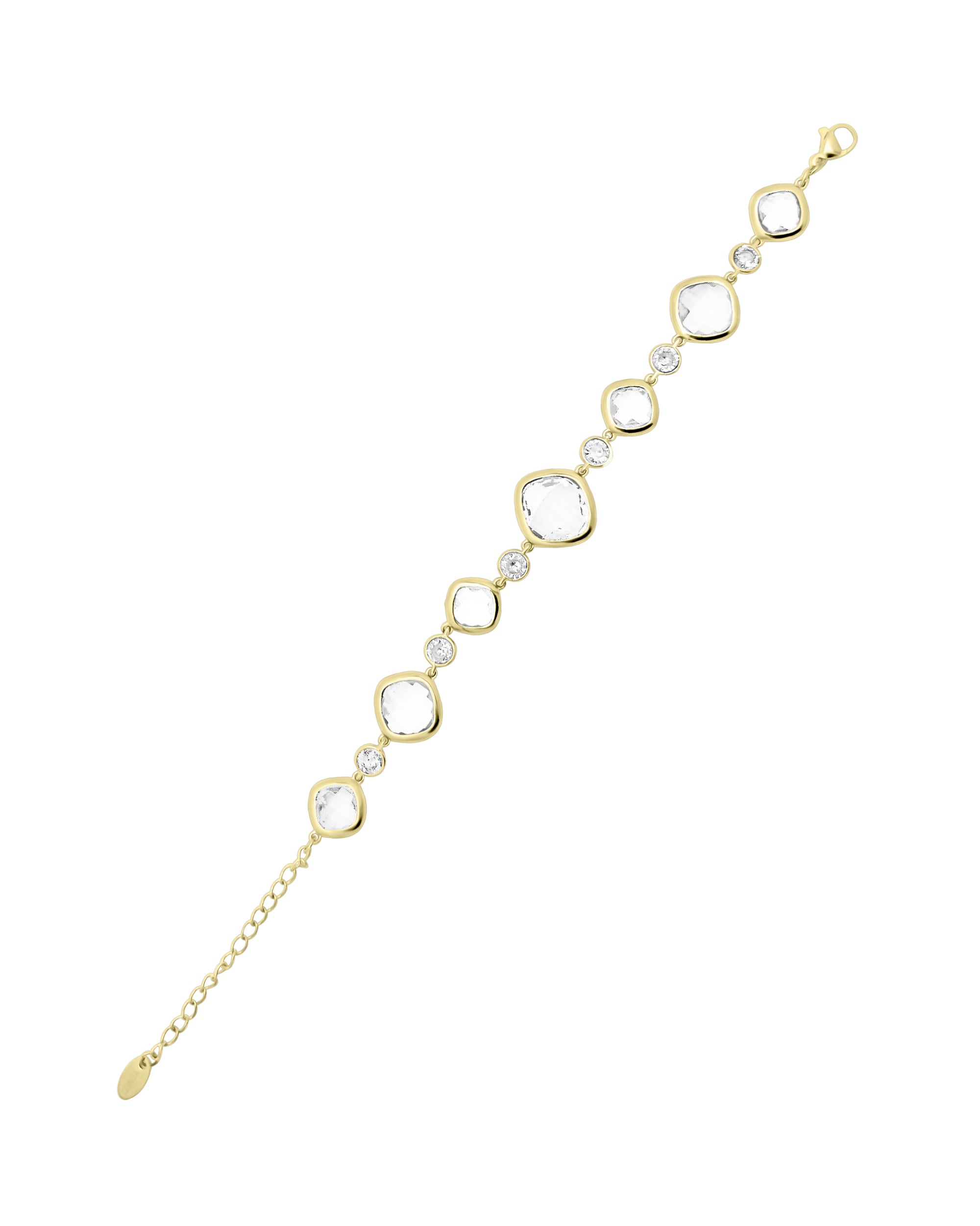 BRACELET EN ACIER DORE AVEC PIERRES BLANCHES FACETTEES