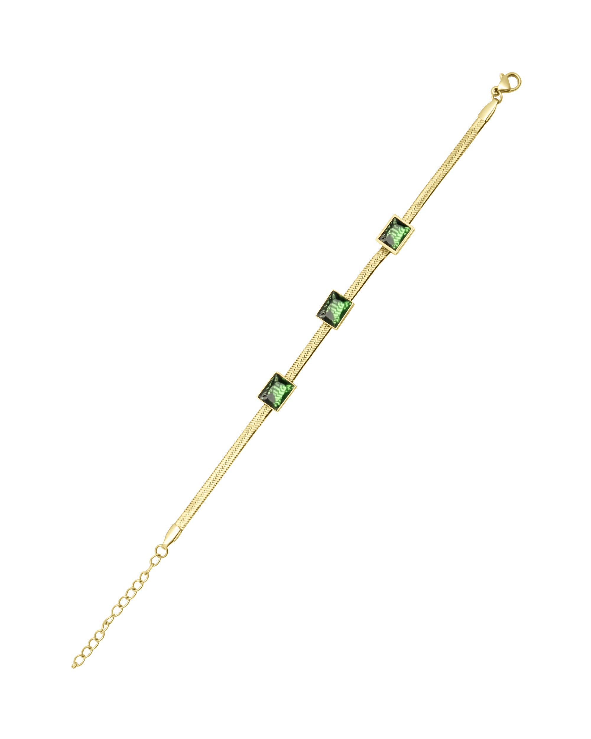 BRACELET EN ACIER DORE AVEC TRIPLE ZIRCONIUM EMERAUDE