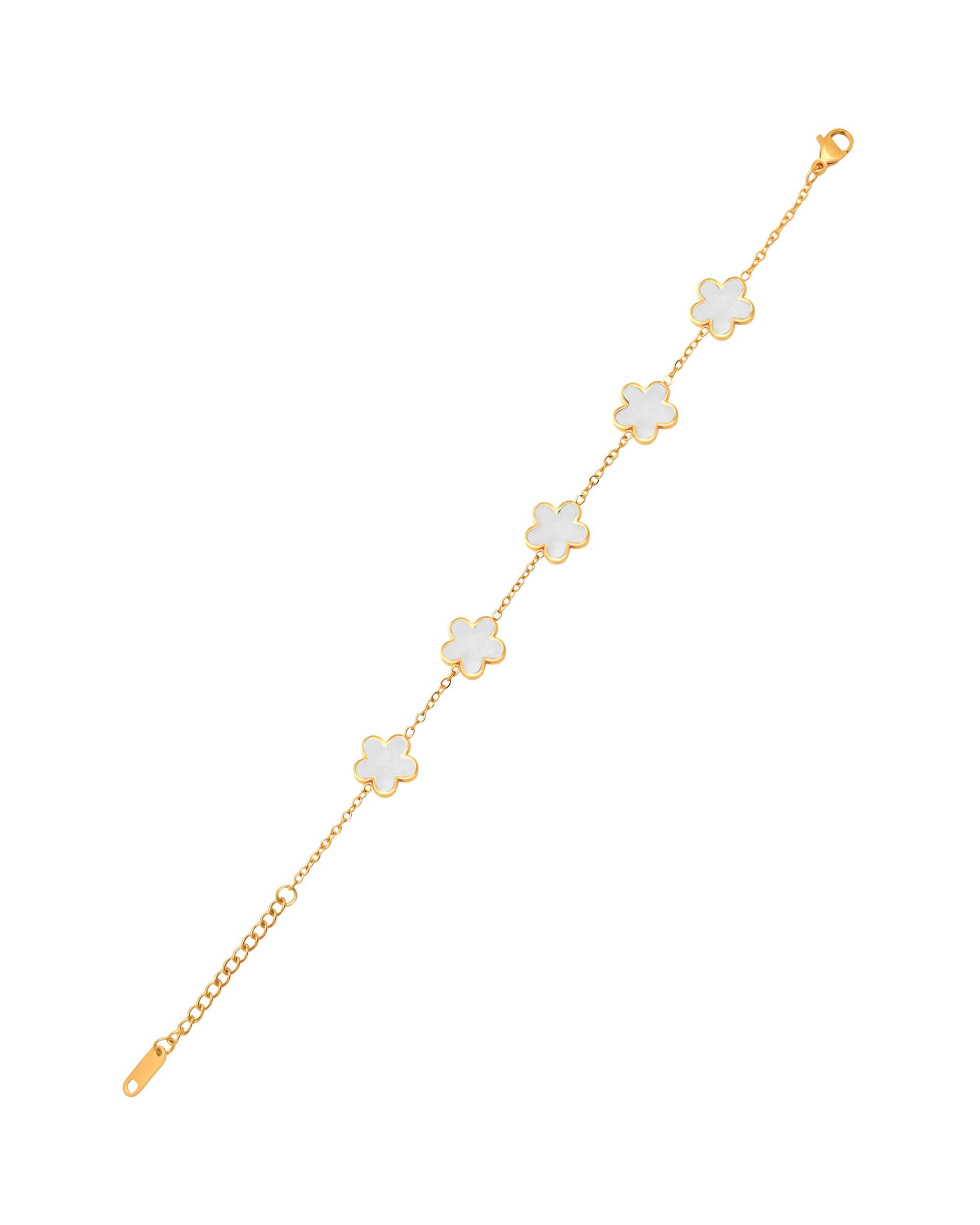 BRACELET EN ACIER DORE MOTIF FLEUR AVEC NACRE BLANC