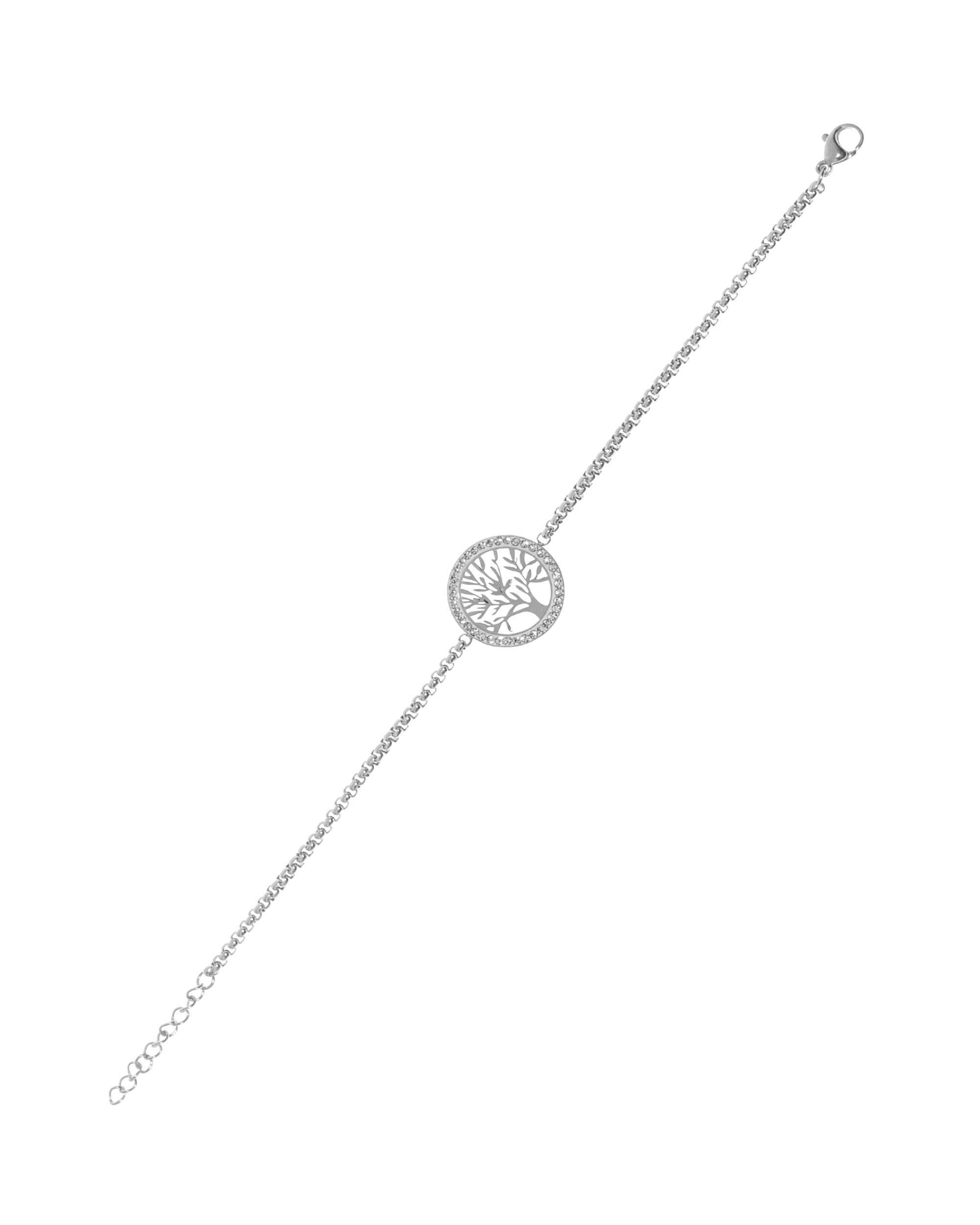 BRACELET EN ACIER MOTIF ARBRE DE VIE CERCLE DE STRASS
