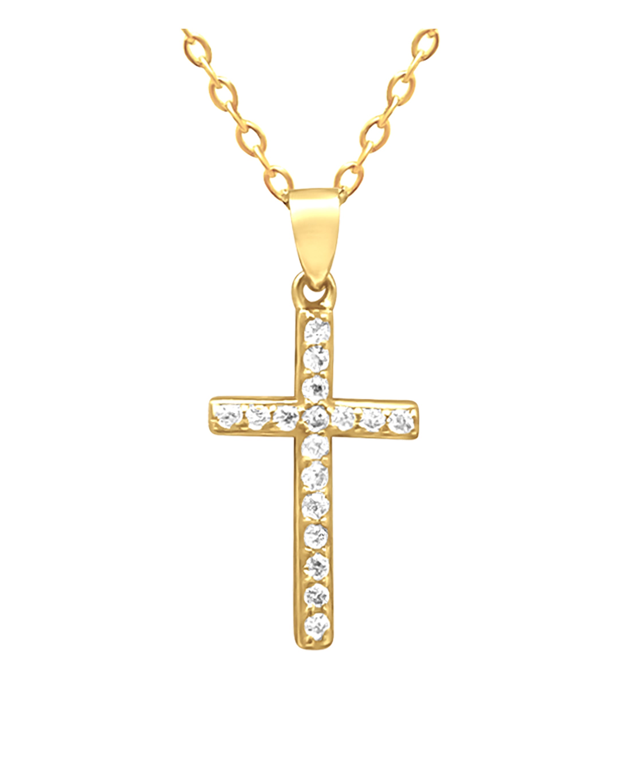 COLLIER EN ARGENT DORE PENDENTIF CROIX AVEC ZIRCONIUM
