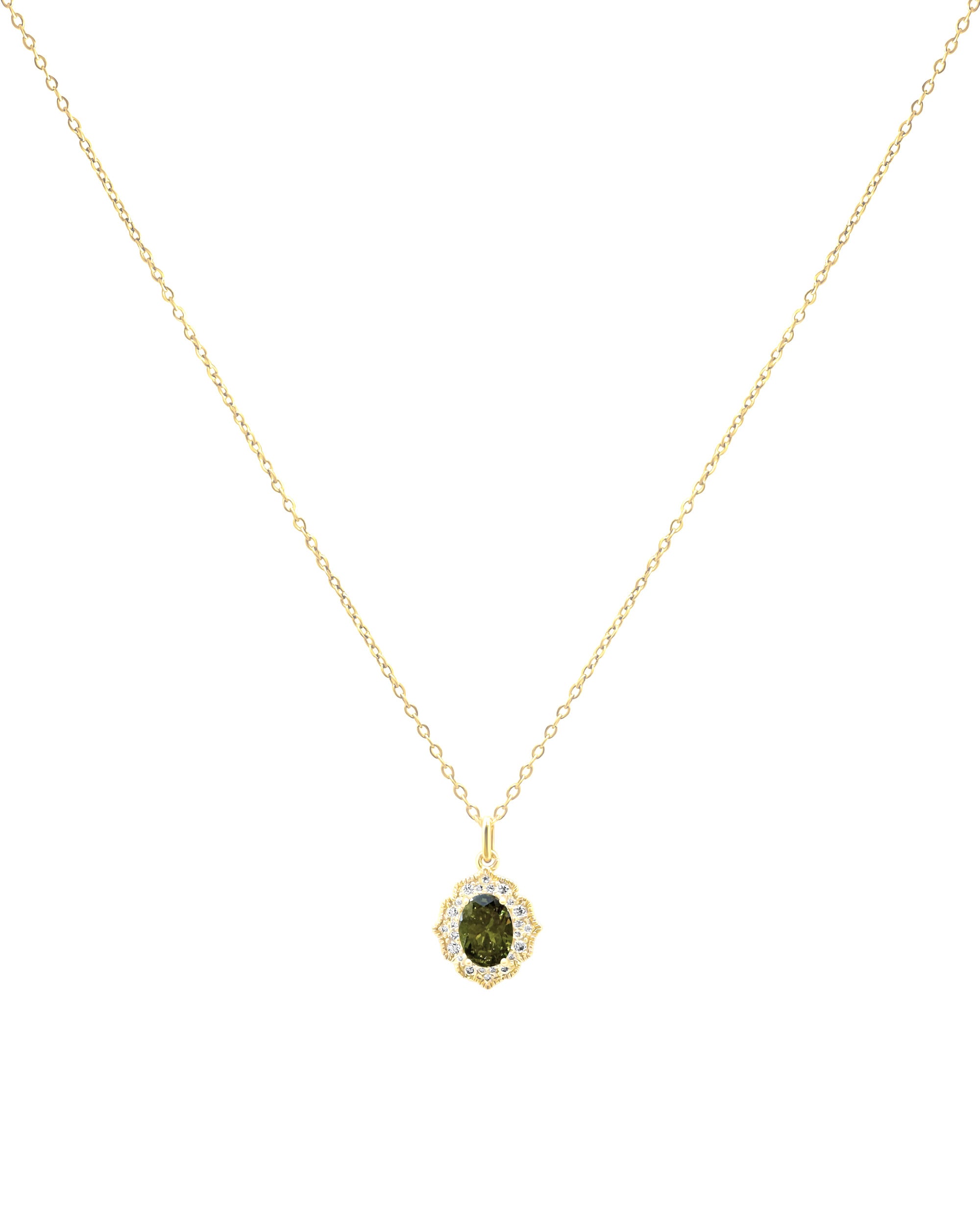 COLLIER DORÉ AVEC ZIRCONIUM ET SOLITAIRE OLIVINE