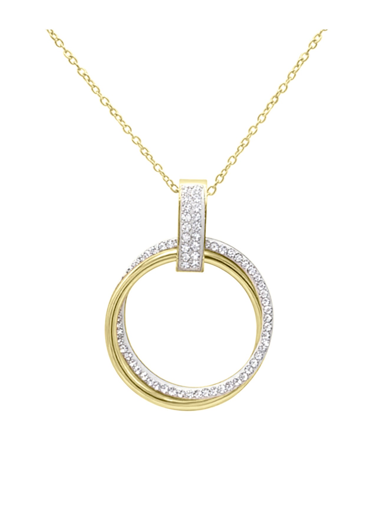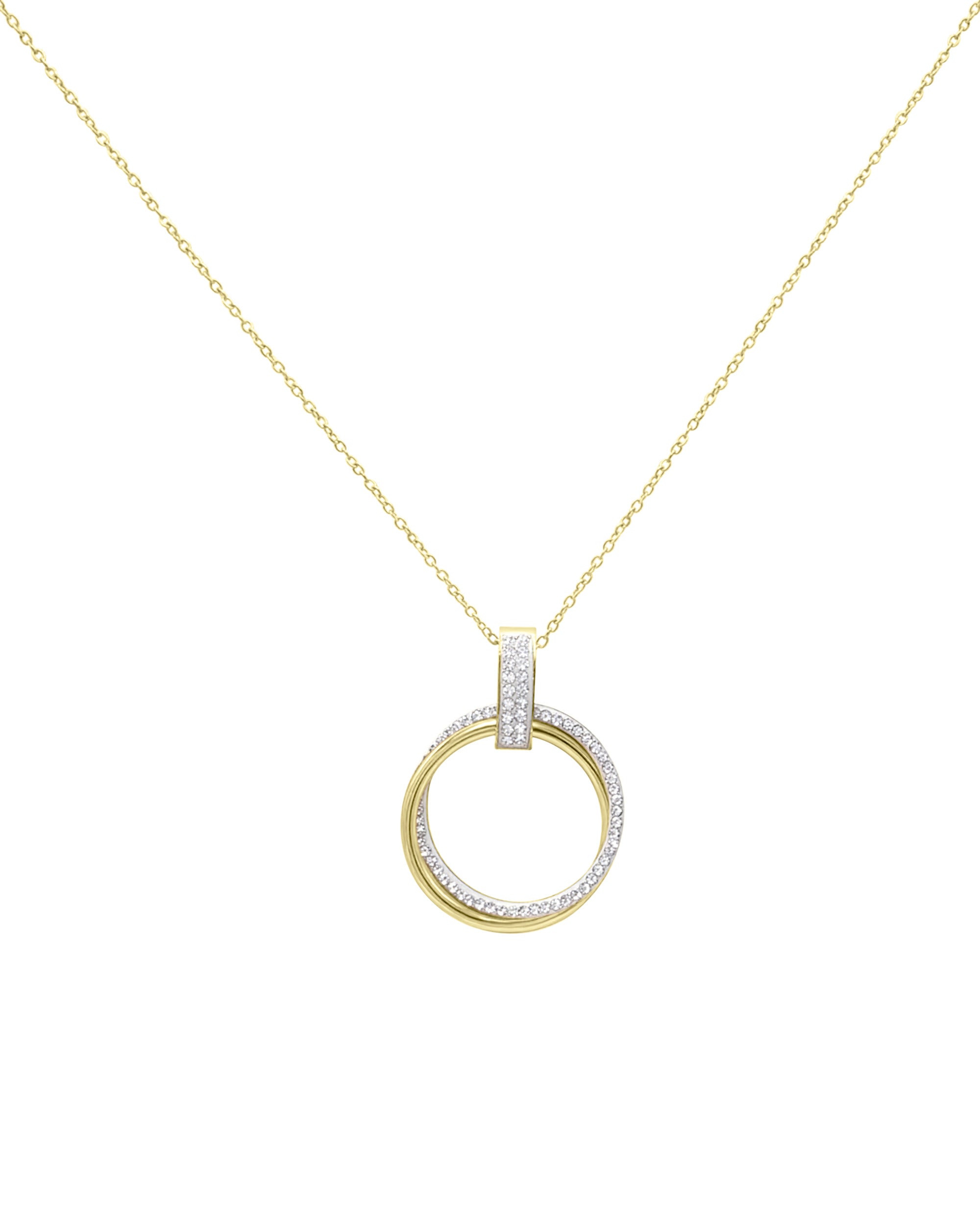 COLLIER EN ACIER DORE 2 CERCLES AVEC STRASS