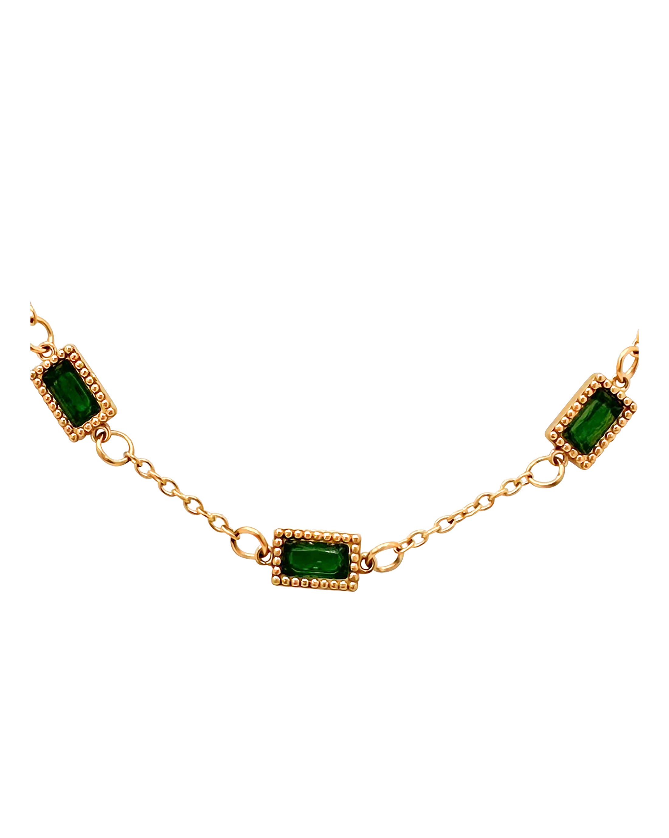COLLIER EN ACIER DORE AVEC PIERRES EMERAUDE