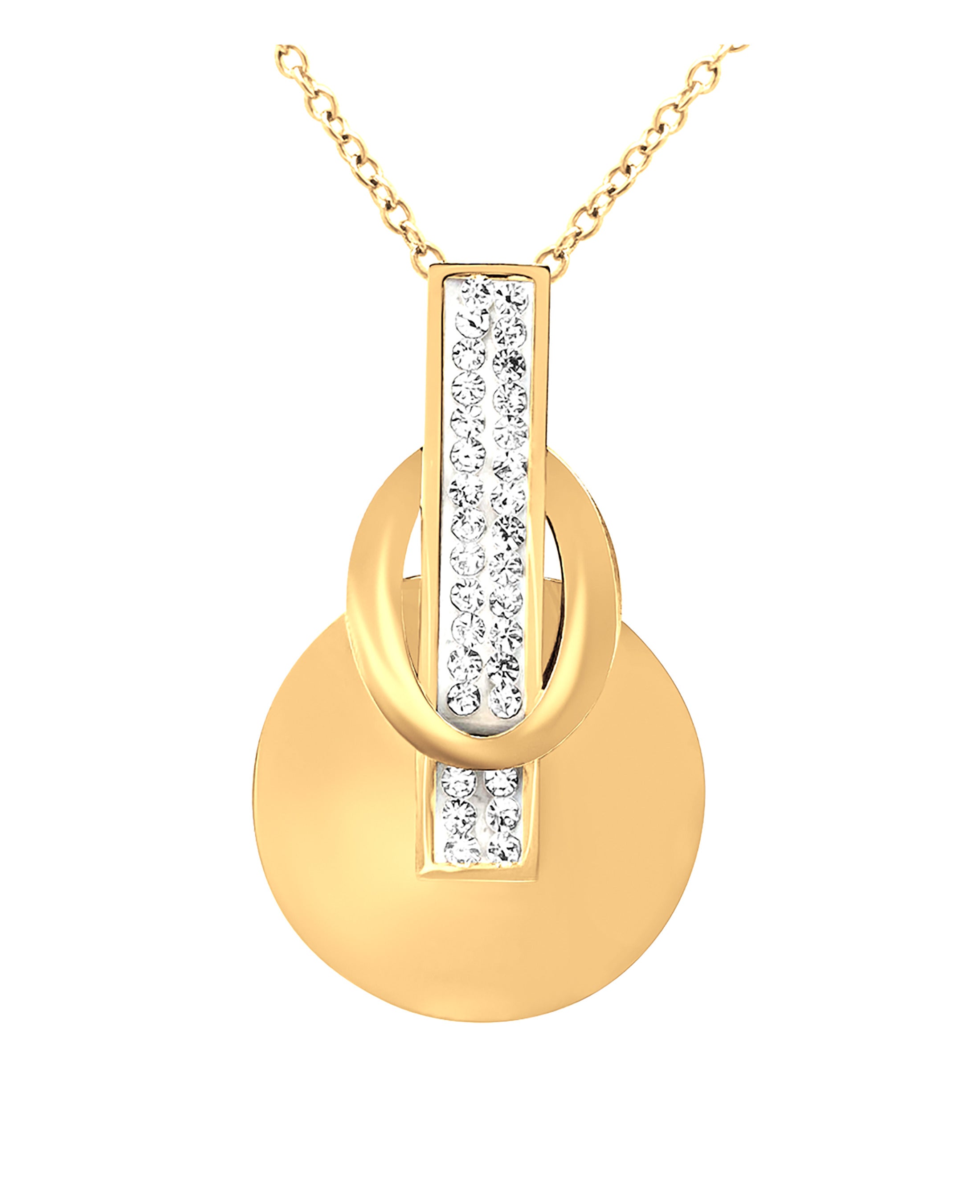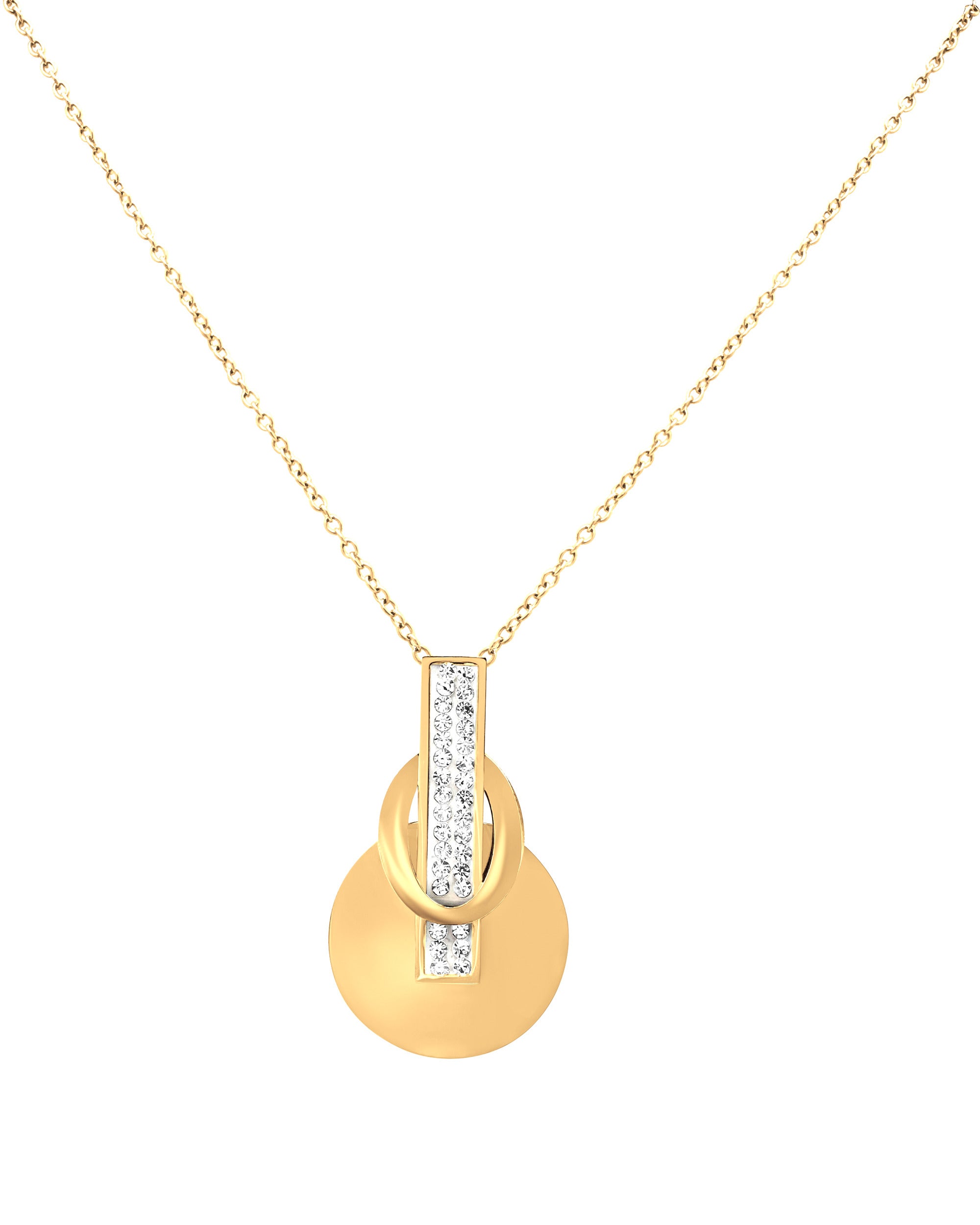 COLLIER EN ACIER DORE BARRE STRASS ET ROND
