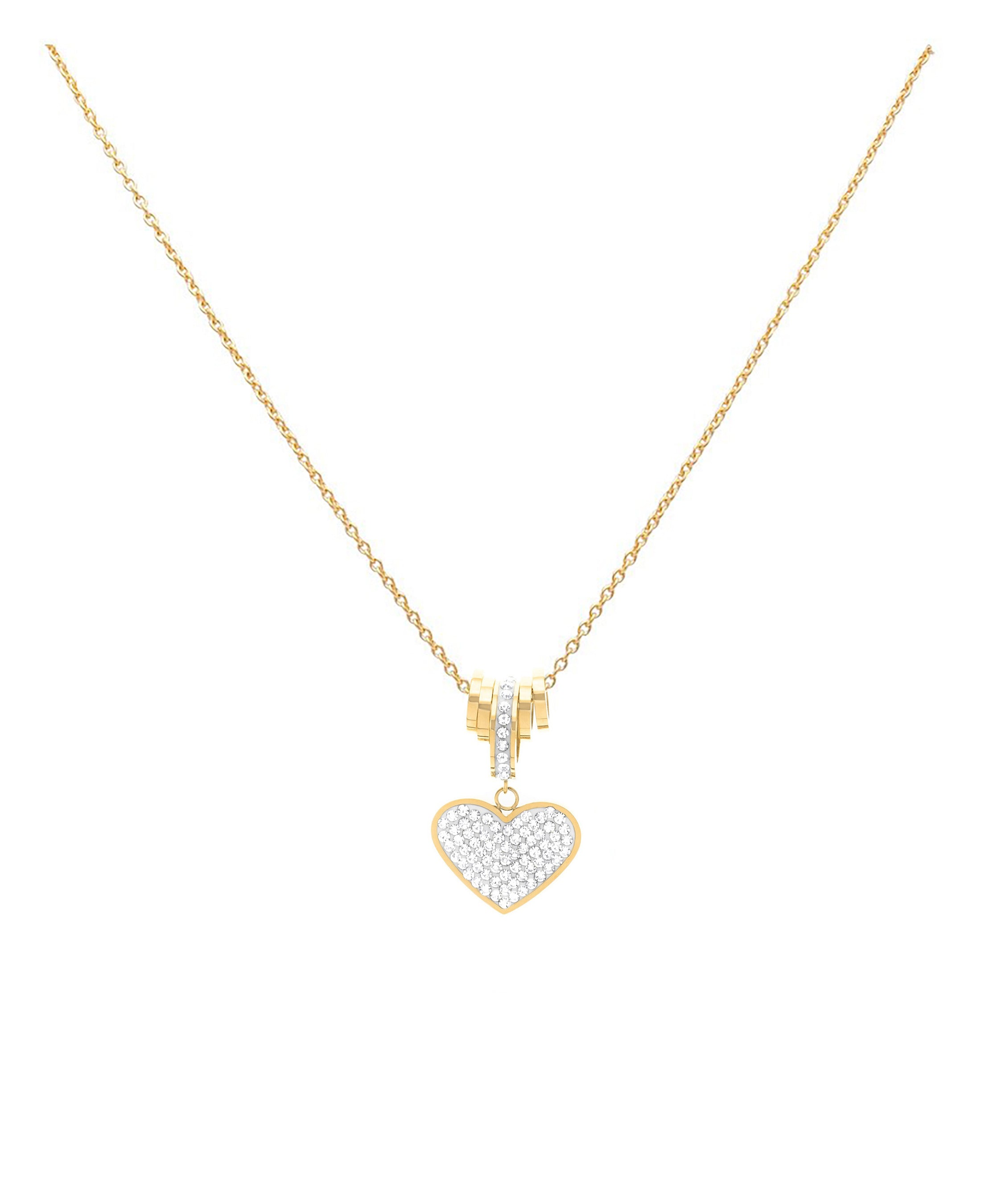 COLLIER EN ACIER DORE CERCLE ET COEUR AVEC STRASS