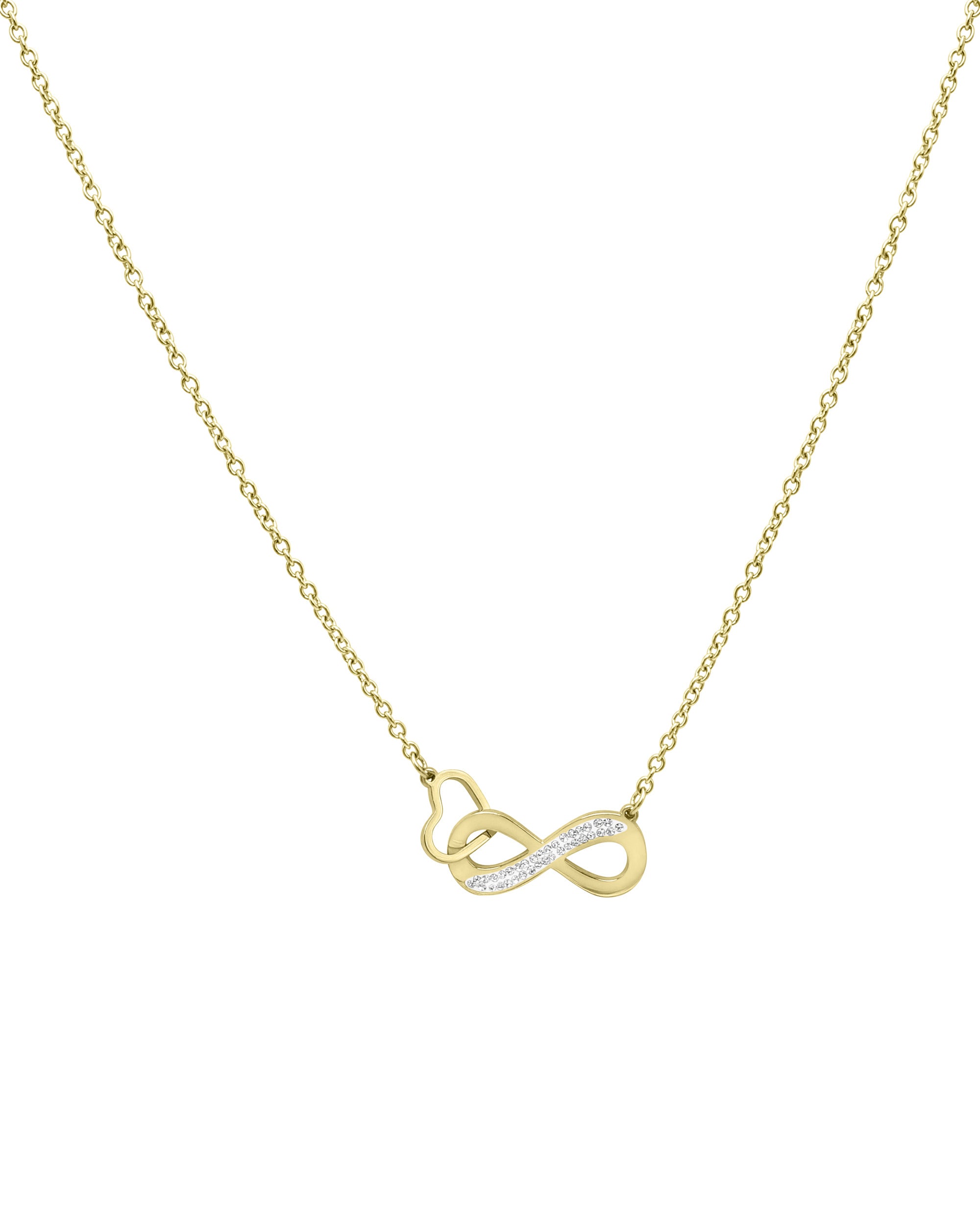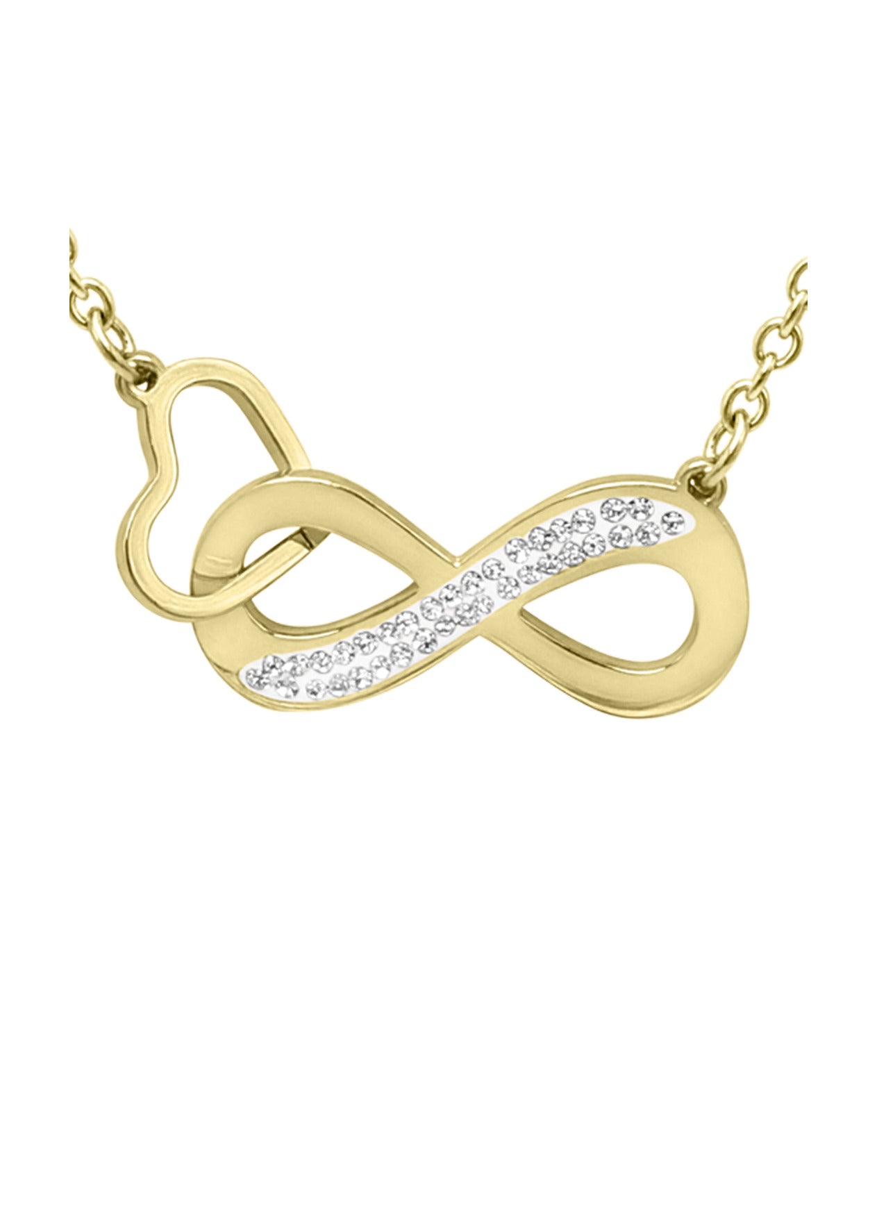 COLLIER EN ACIER DORE COEUR ET INFINI AVEC STRASS