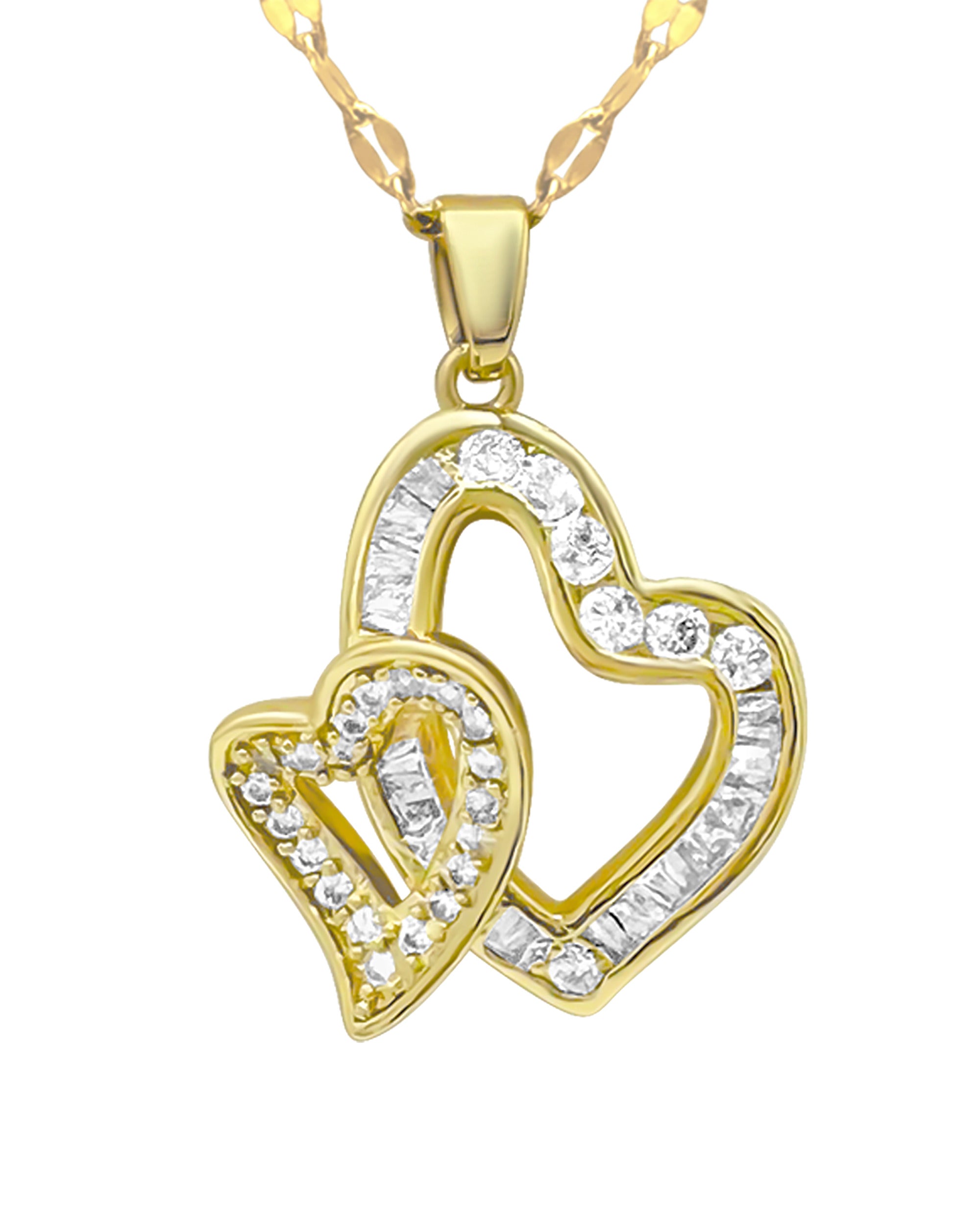 COLLIER EN ACIER DORE DOUBLE COEUR AVEC ZIRCONIUM