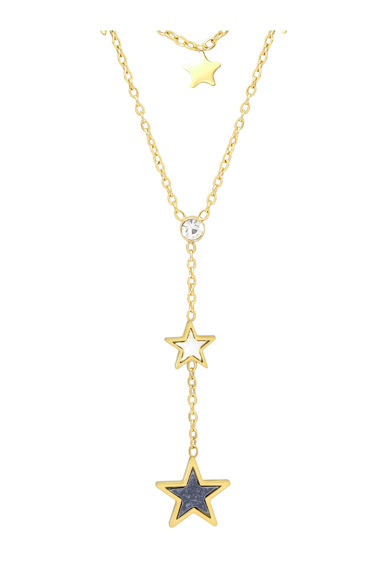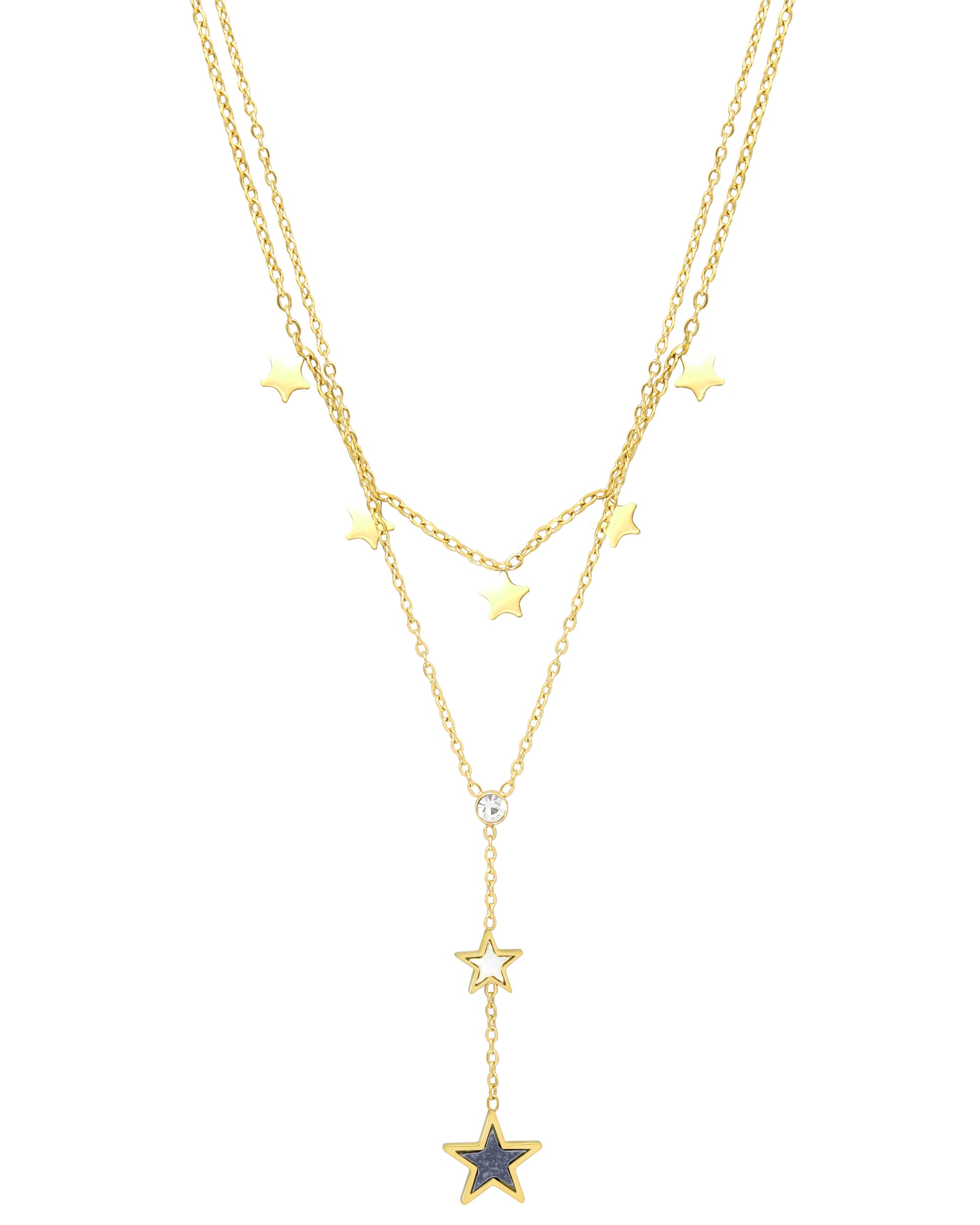 COLLIER EN ACIER DORE DOUBLE MAILLE AVEC ETOILES