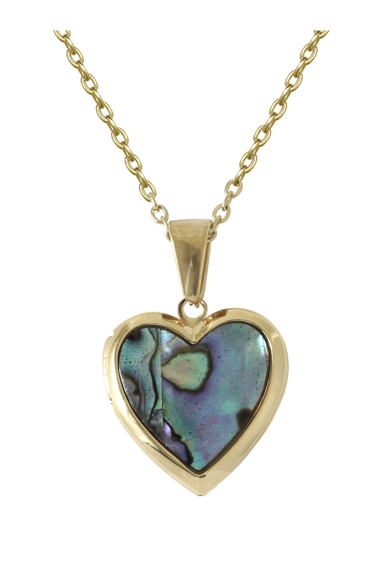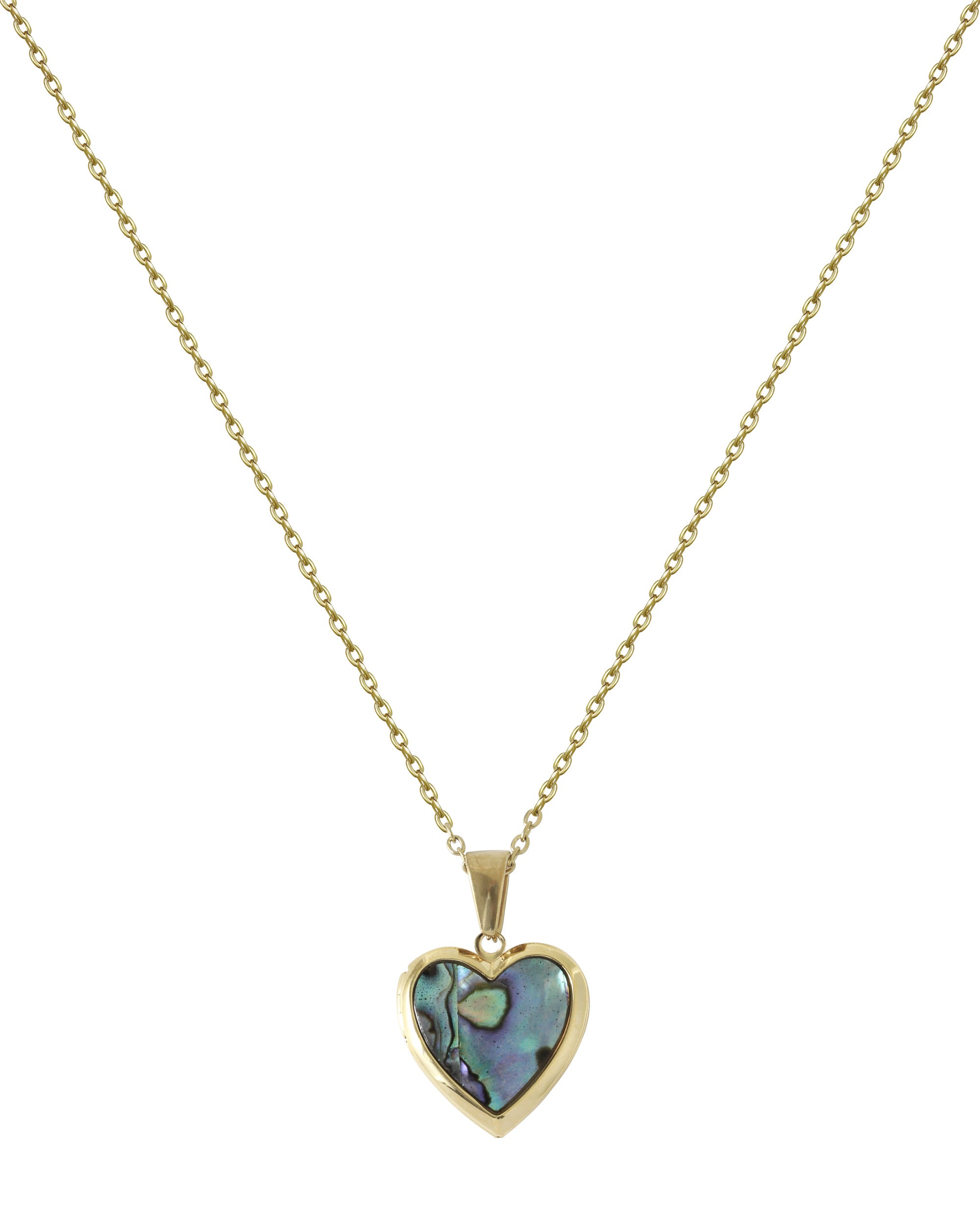 COLLIER EN ACIER DORE MEDAILLON COEUR NACRE D'ORMEAU