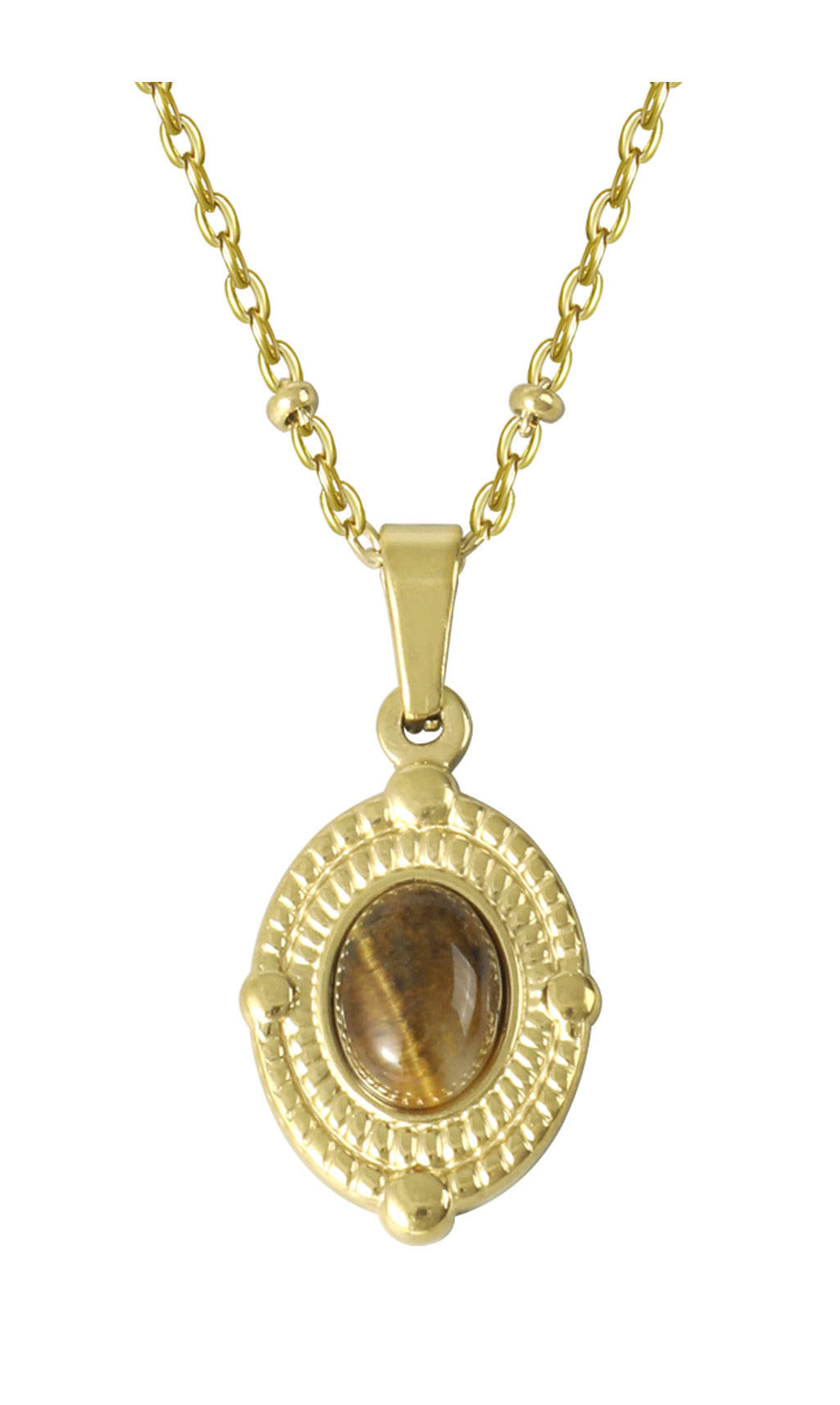 COLLIER EN ACIER DORE MEDAILLON OEIL DE TIGRE