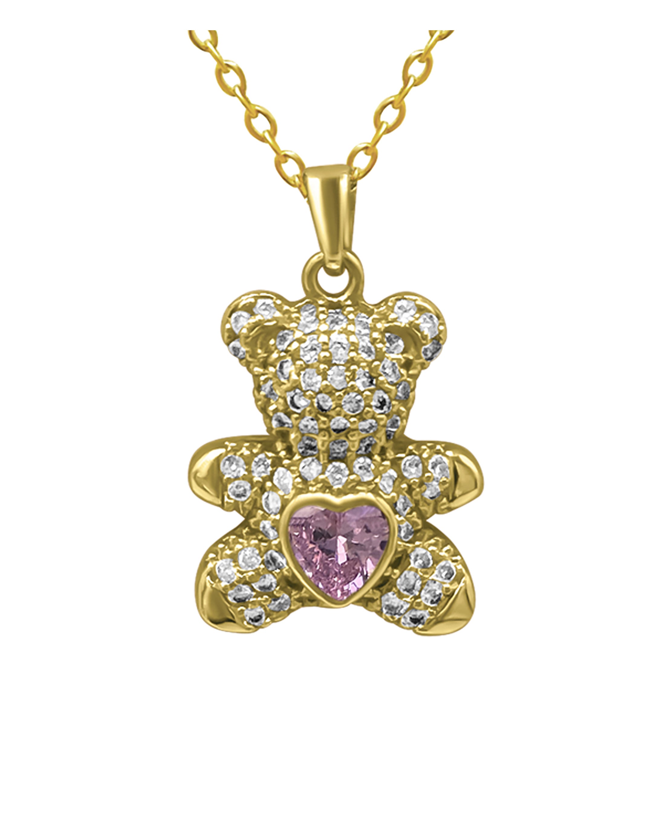 COLLIER EN ACIER DORE NOUNOURS AVEC COEUR CENTRAL ROSE EN ZIRCONIUM