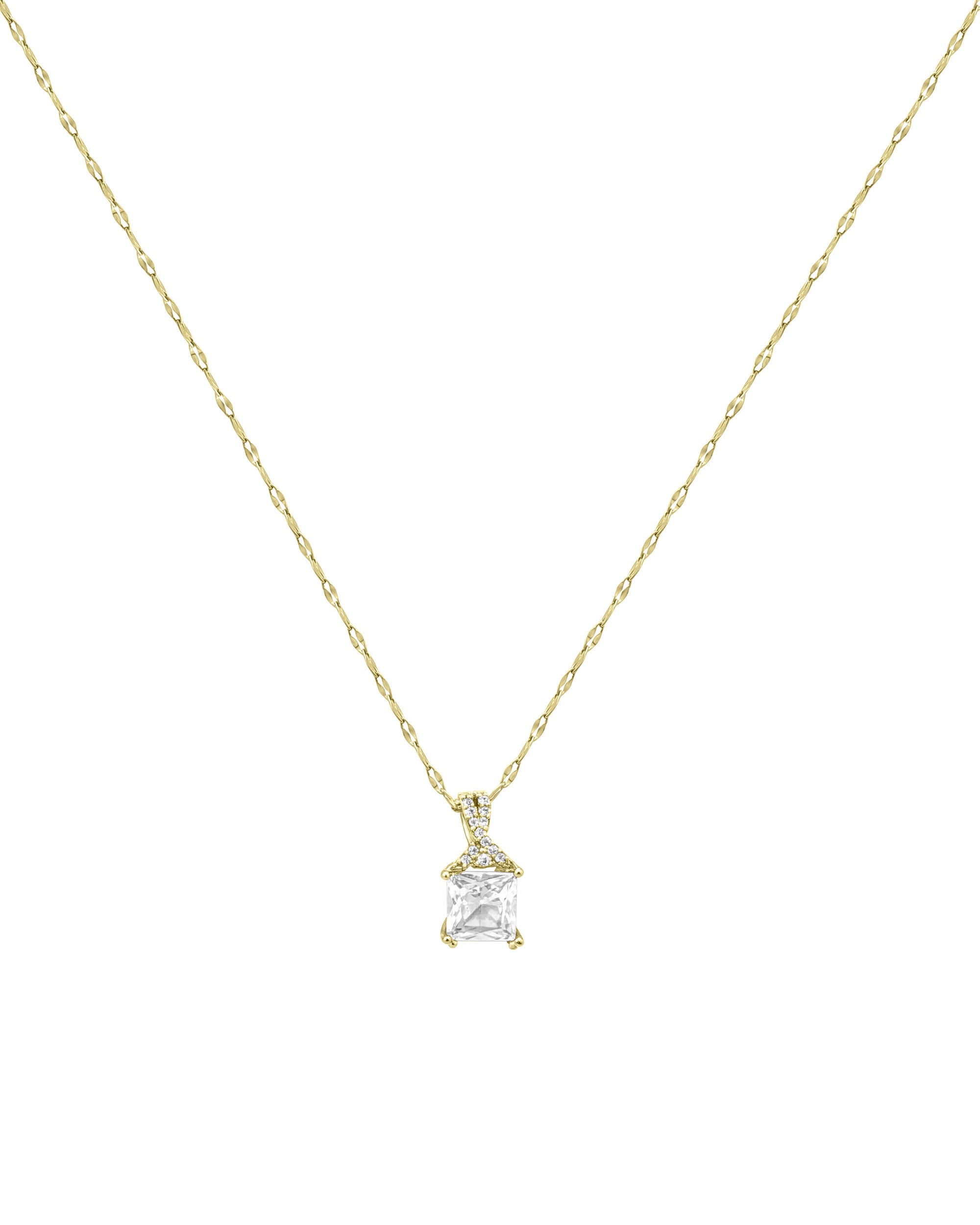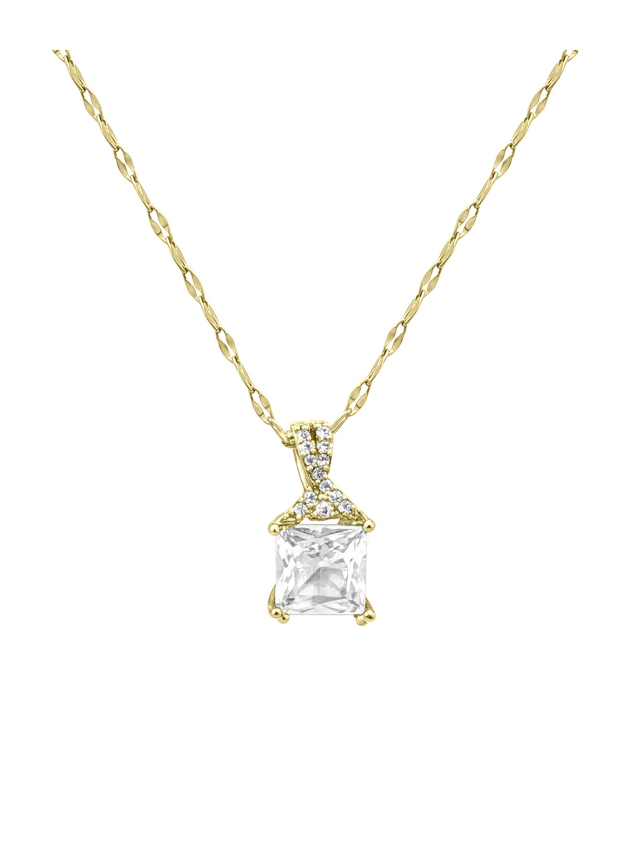 COLLIER EN ACIER DORE PENDENTIF CARRE AVEC SOLITAIRE