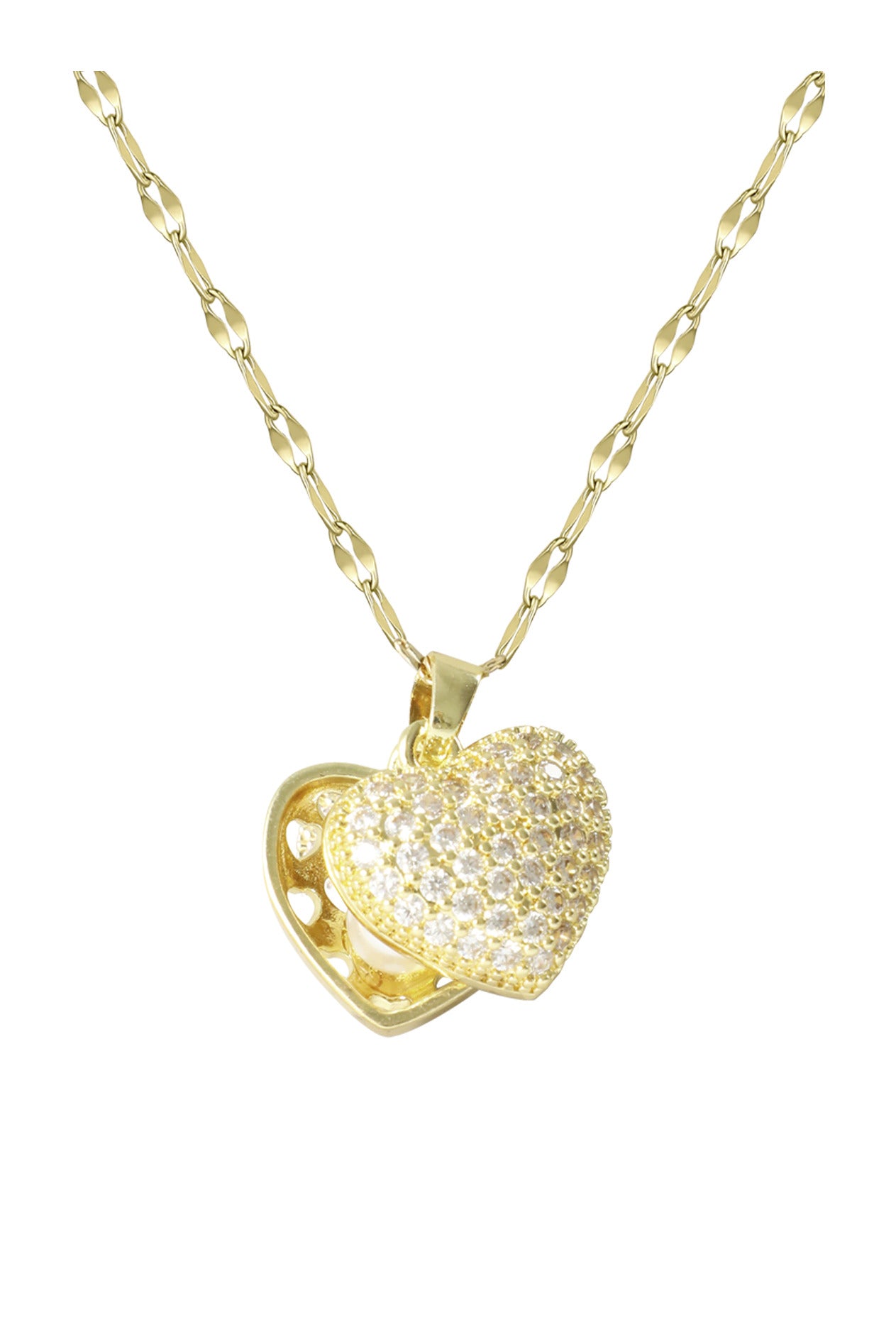 COLLIER EN ACIER DORE PENDENTIF COEUR OUVERT AVEC PERLE