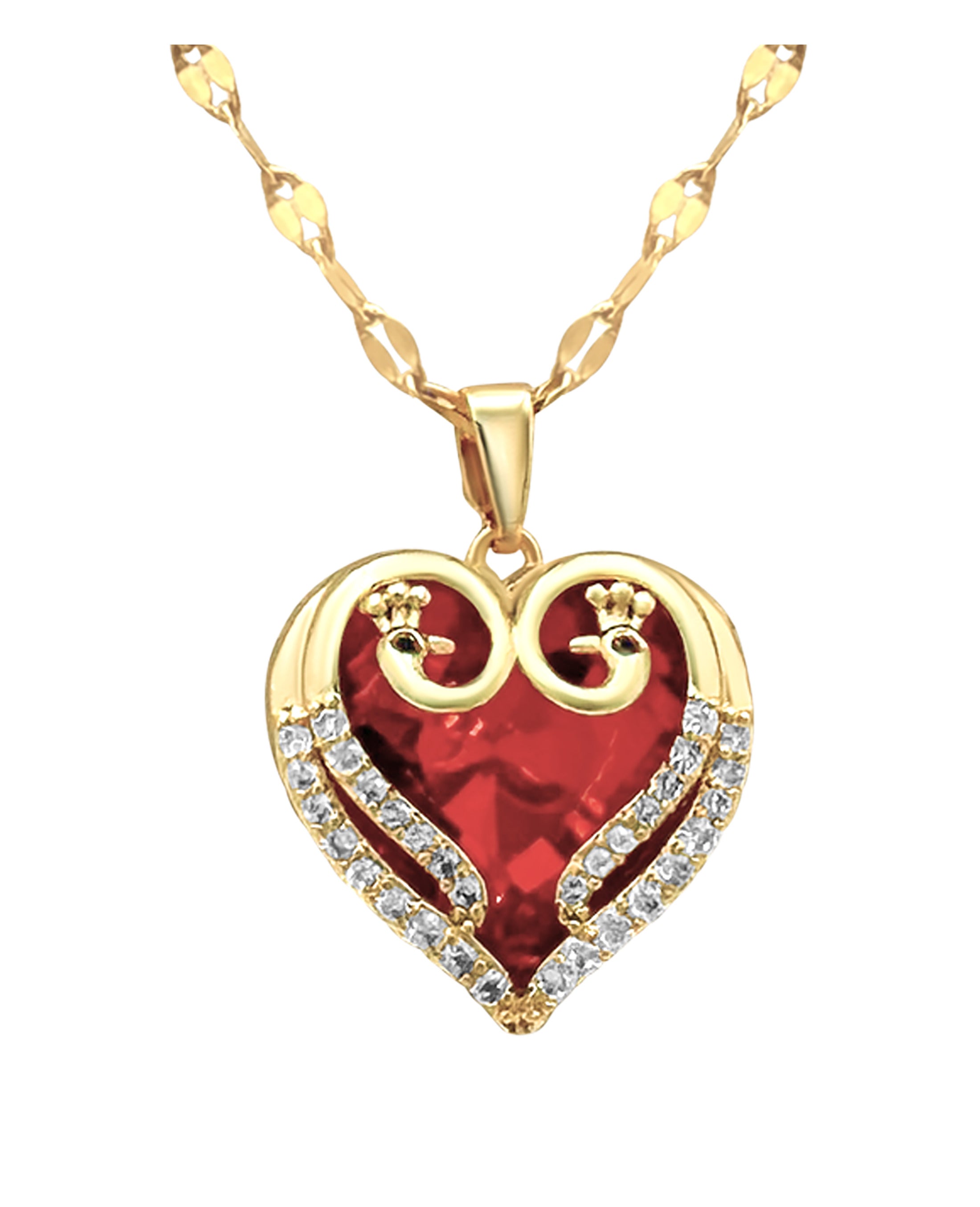 COLLIER EN ACIER DORE PENDENTIF COEUR RUBIS AVEC STRASS