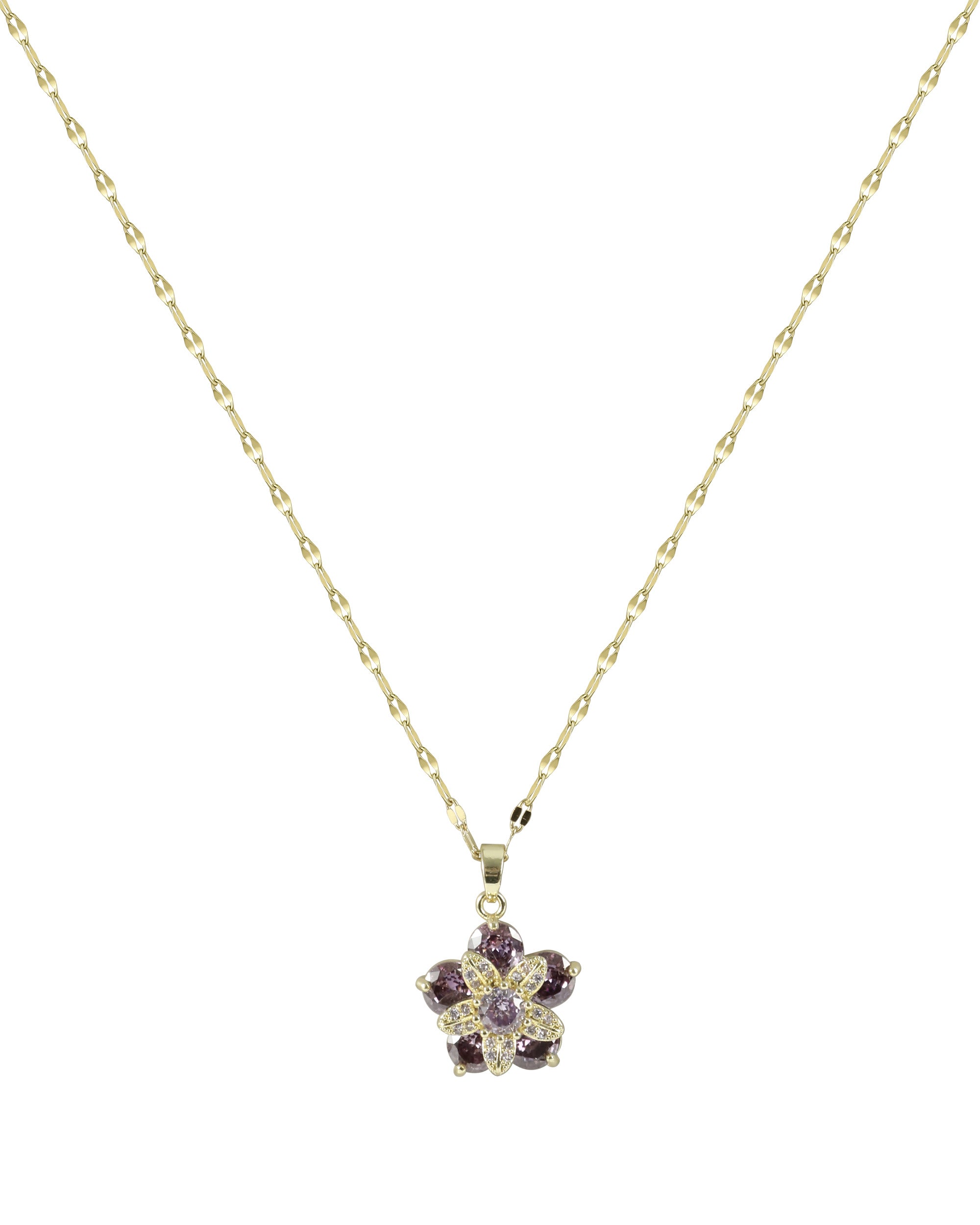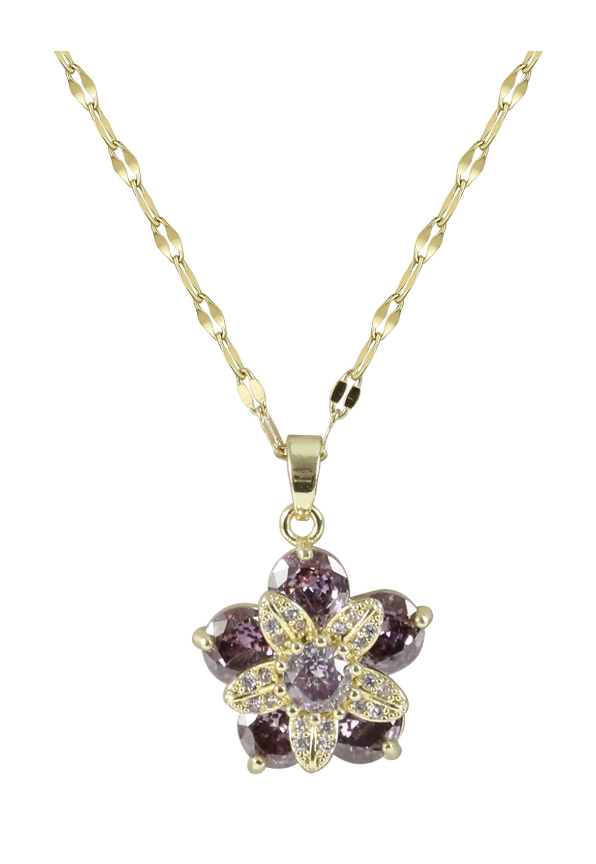 COLLIER EN ACIER DORÉ PENDENTIF FLEUR AMÉTHYSTE EN ZIRCONIUM ROTATIVE