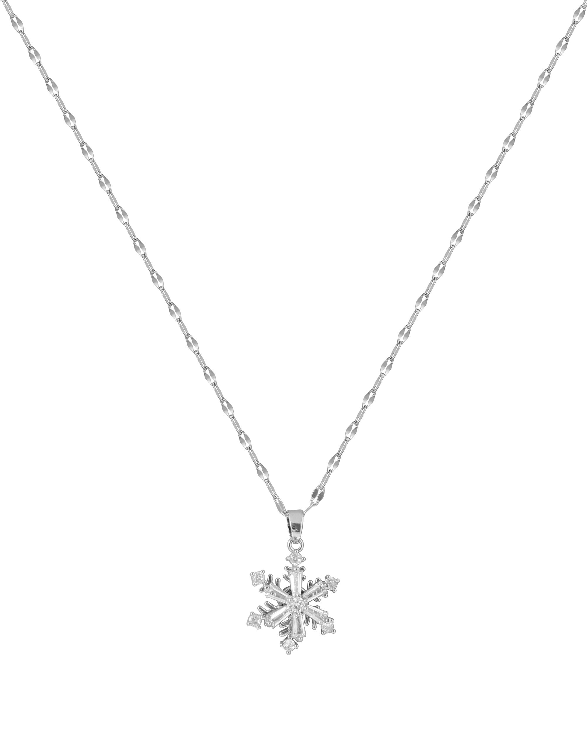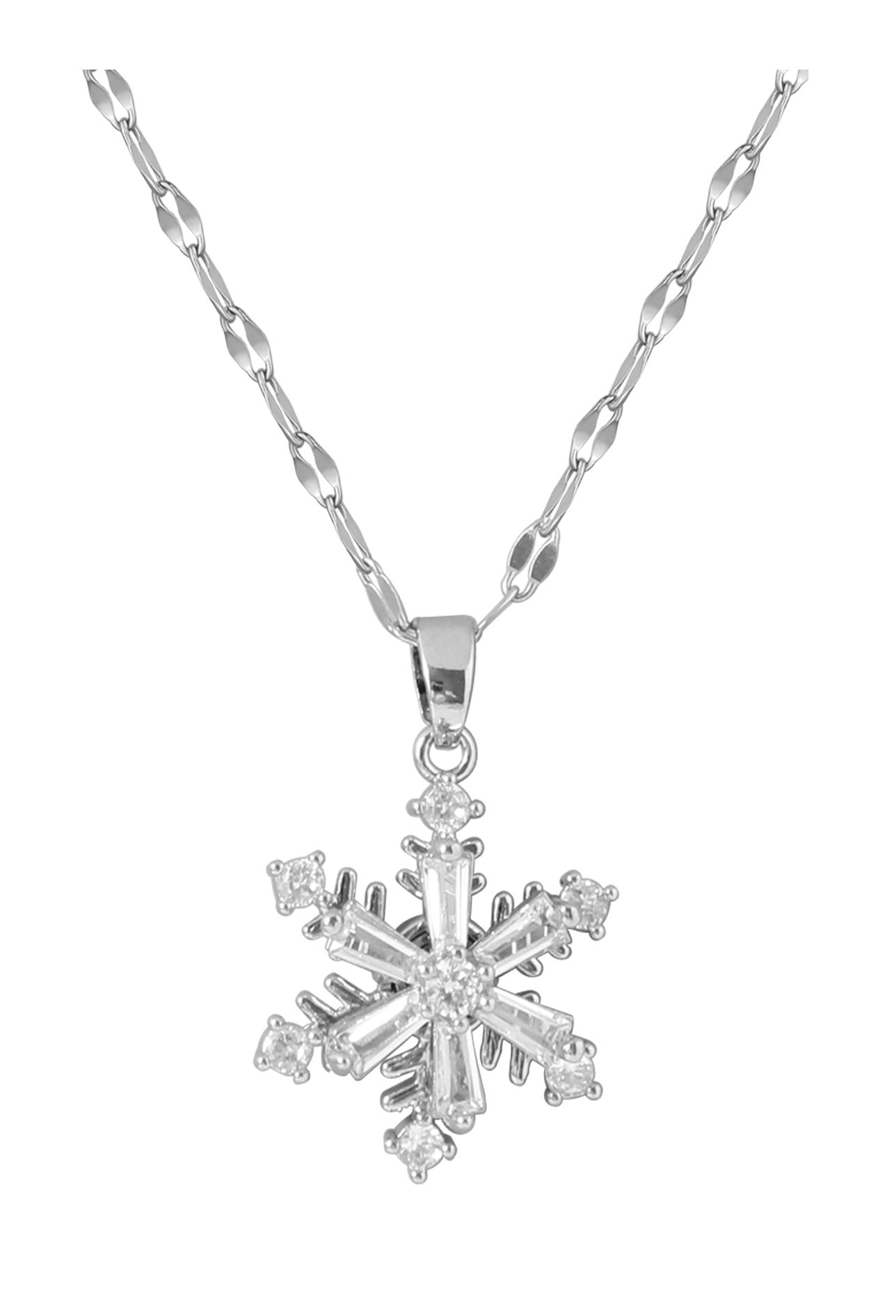 COLLIER EN ACIER DORE PENDENTIF FLOCON DE NEIGE EN ZIRCONIUM